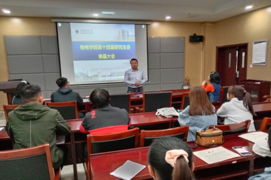 黄友生在讲话中肯定了研究生会的各项工作,希望新一届研究生会进一步加强学习、明确定位、强化服务,切实发挥桥梁纽带作用,为学院研究生日常教育管理服务做出应有的贡献。