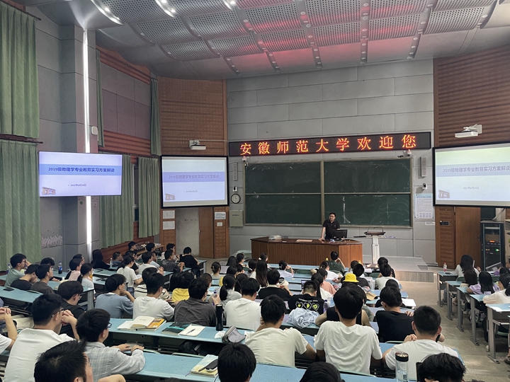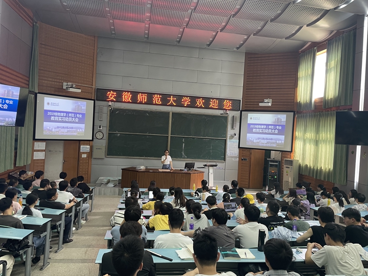 积极启动2023届物理学(师范)专业教育实习工作。6月20日下午,学院于教学楼2010105阶梯教室召开2023届物理学(师范)专业教育实习动员大会。学院教学副院长张爱清,物理教师教育研究室主任、专业教师汪志荣,2019级物理学(师范)专业全体同学参会,会议由辅导员邹孝龙主持。