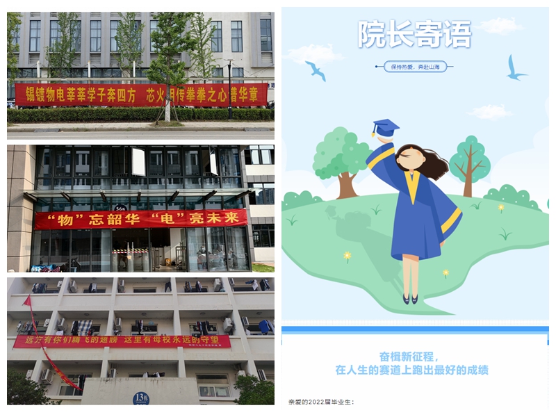 一张合影致青春,学院领导老师与同学们在敬文图书馆前合影留念,并提供专门定制的物电合影留念背景墙,为毕业生在留下珍贵瞬间,印刻美好记忆。一件实事送一程,全体领导班子、专业负责人、辅导员深入学生宿舍走访慰问,为毕业生送去人文关怀,现场排忧解难。学院为每位毕业生购买了编织袋打包行李,并精心定制个性化的毕业纪念品。积极推进、有力组织“为母校留下美好”毕业生宿舍清扫行动。