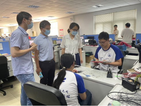 在埃泰克汽车电子有限公司,副院长张爱清参观了产品研发部、生产部和软件部,结合现场介绍,就制作、加工、技术等细节与工作人员和实践学生进行贴心交流,了解实践实况。她强调,希望同学们在社会观察、国情考察、产业体察中了解国情社情民情,感受祖国发展变化,感受各行业蓬勃发展的生动实践,真正在社会实践中受教育、长才干、树形象。