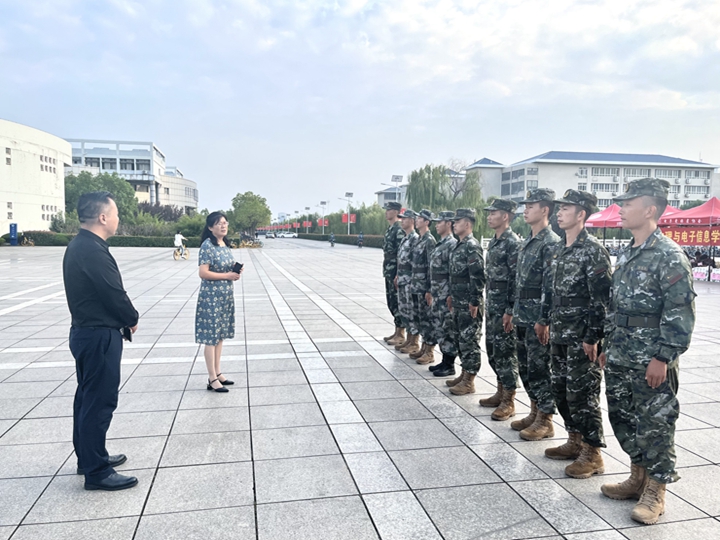 李娟代表学院向承训教官和担任助训任务的学院退伍大学生士兵表达了最真挚的问候,并对参训教官的辛勤付出致以诚挚谢意。