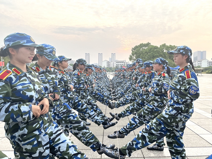英姿飒爽致青春。学院领导李娟、黄友生来到训练场地观看新生训练动作,新生同学们正身着戎装踢正步,动作整齐划一,步伐铿锵有力,口号响亮清澈,李娟对此表示欣慰,希望同学们将军训中培养出的优良品质延续到今后四年的大学生活中,通过军训确立远大志向,做有志气的新时代青年,不畏艰辛,砥砺前行。同时对教官们的工作给予了高度评价,充分肯定了教官们的工作成果。