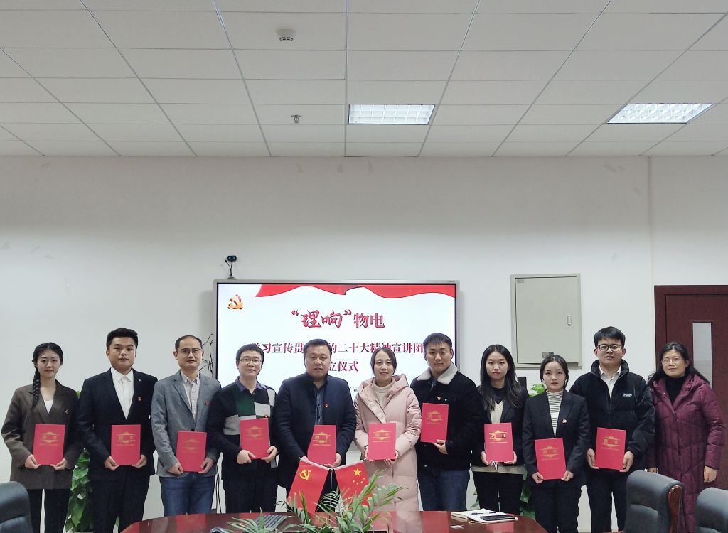 举行“理响物电”学习宣传贯彻党的二十大精神师生宣讲团成立仪式暨宣讲系列活动。院党委书记李娟及受聘宣讲团师生代表出席仪式,仪式由院党委副书记黄友生主持。