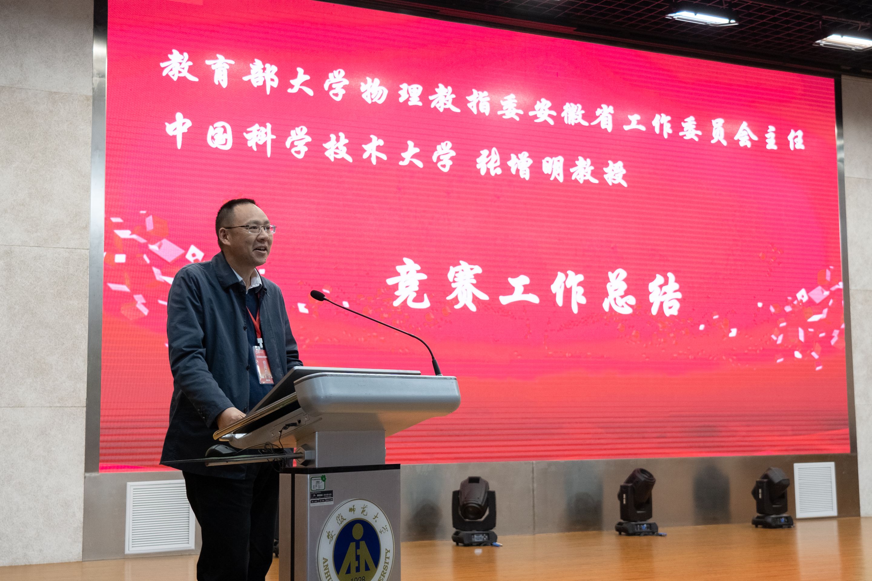 4月29日下午,本届竞赛闭幕式暨颁奖典礼在理科大楼报告厅举行。教育部大学物理教指委安徽省工作委员会主任中国科学技术大学张增明教授致进行竞赛工作总结。他表示,大学生物理学术竞赛对于物理学科的学习有着理论与实践结合的意义,能够提升学生的科学素养和思维水平,进而为安徽省培养出更多的创新性人才,并对包子漫画