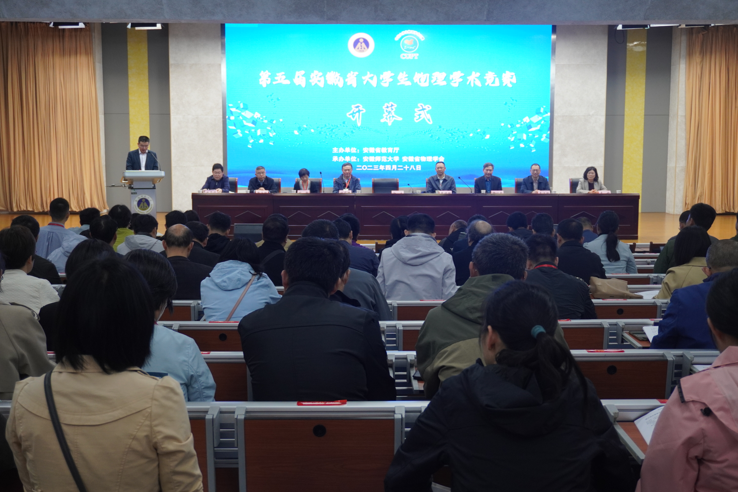 和安徽省物理学会承办的2023年安徽省大学生物理学术竞赛在我校举办。来自安徽21所高校的四百余名师生参加了此次竞赛。中国大学生物理学术竞赛(简称CUPT)是中国借鉴国际青年物理学家锦标赛模式创办的一项全国性赛事。参赛学生就实际物理问题的基本知识、理论分析、实验研究、结果讨论等进行辩论性比赛。