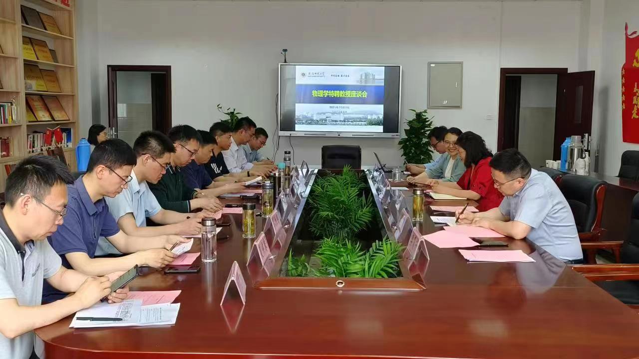 附属中学朱德松、卢先立,安庆一中谢恩东共8名物理学科中学名师,校教务处处长崔光磊、院党委书记李娟、副院长张爱清、物理系主任吕建平、教师教育教研室主任汪志荣以及辅导员齐聚一堂,为物理学暑期小学期教学工作献言献策。本次研讨会由副院长张爱清主持。