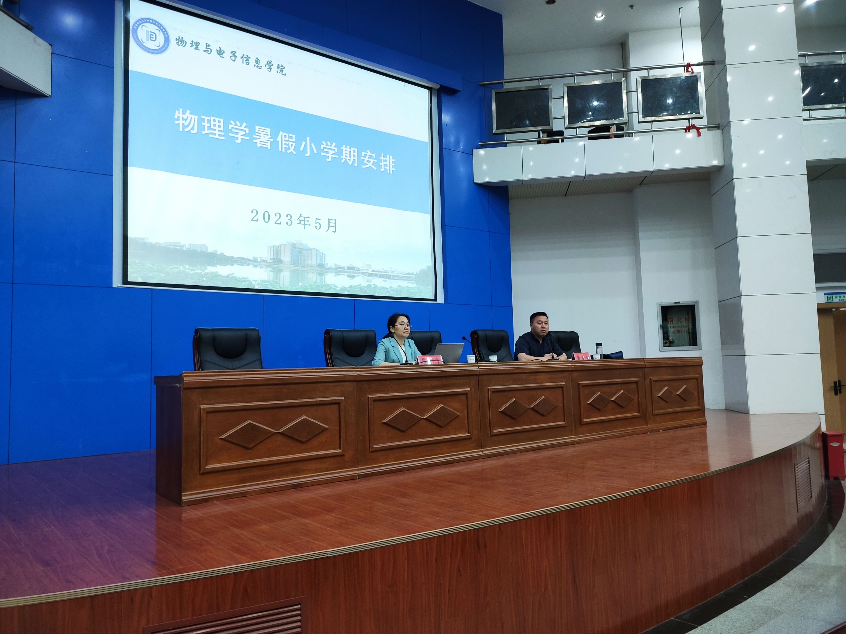 在敬文报告厅开展暑假小学期方案解读会。副院长张爱清、院党委副书记黄友生和相关专业学生辅导员及物理学师范专业学生参加了会议。会议由辅导员曹阳主持。