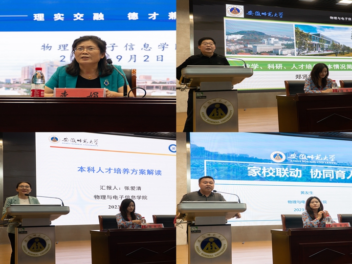 在理化大楼报告厅召开2023级新生家长会。学院党委书记李娟、院长郑贤锋、副书记黄友生、教学副院长张爱清,新生辅导员刘燕、邹孝龙、张月停,全体新生家长及部分新生参会。会议由李娟主持。