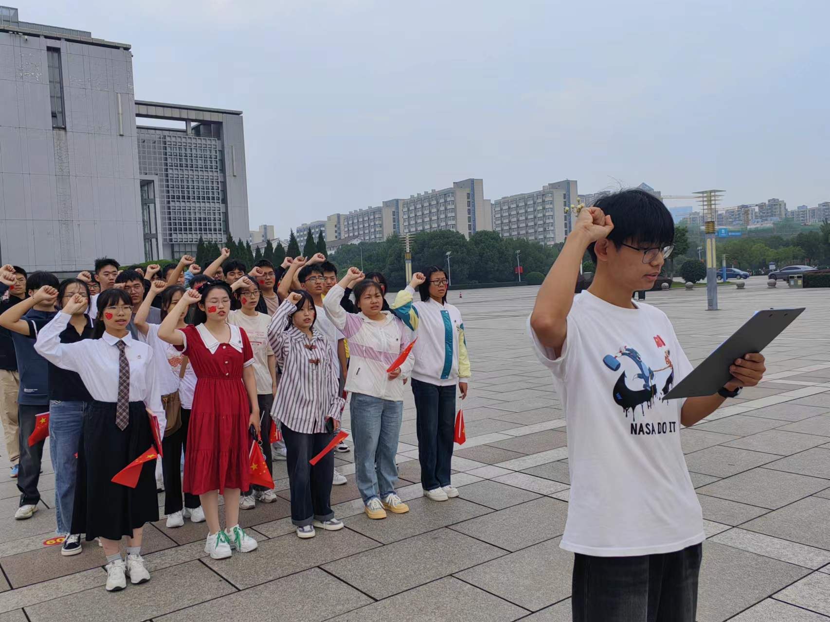 于10月1日上午,在敬文图书馆东广场举行庆祝国庆74周年主题团日活动。学院辅导员张月停老师、魏潘晨老师,以及国庆假期留校的各年级学生参加了本次活动,活动由魏潘晨主持。