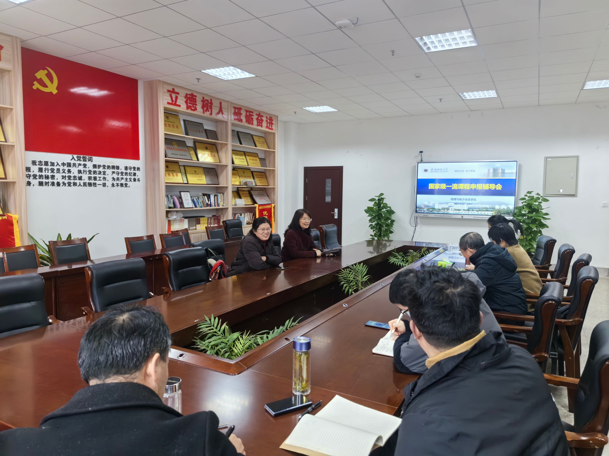 为深入贯彻落实学校“学科振兴行动计划”“基础教育振兴行动计划”,推动一流课程建设,提升课程建设水平,构建智慧教育教学新形态,12月13日下午,学院在物理楼308会议室举办国家级一流本科课程建设与申报专题辅导交流会,特邀化学与材料科学学院阚显文教授到场开展申报工作指导,学院副院长张爱清及本年度拟申报国家级一流课程全体老师参加此次交流会。