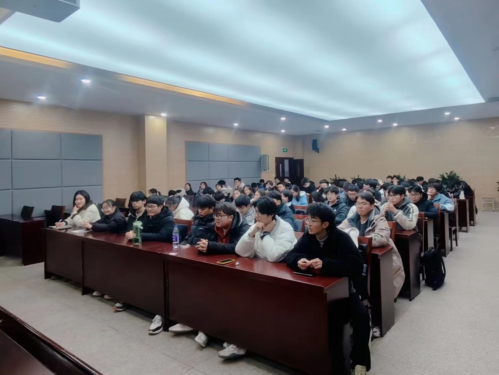 院长郑贤锋为2023级光电信息科学与工程专业讲授“明德笃行树学风,踔厉奋发向未来”专题形势与政策课,辅导员张月停以及2023级光电信息科学与工程专业全体同学现场聆听。