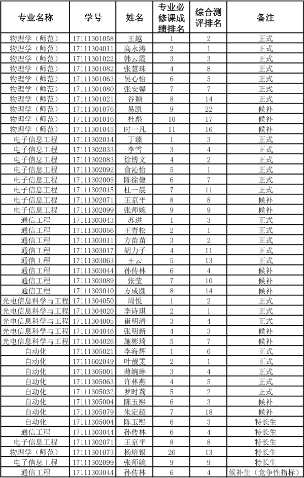 根据包子漫画 “关于做好我校2021届优秀本科毕业生免试攻读硕士学位研究生推荐工作的通知”(教务处[2020]48号)文件精神,包子漫画 推荐2021届本科毕业生免试研究生工作正在进行。经过各专业内初选及公示,学院推免生遴选工作小组对符合条件的应届本科毕业生进行了审核遴选,拟推荐以下同学为2021届本科毕业生免试攻读硕士学位研究生人选(含候补人选)。现将名单予以公示。
