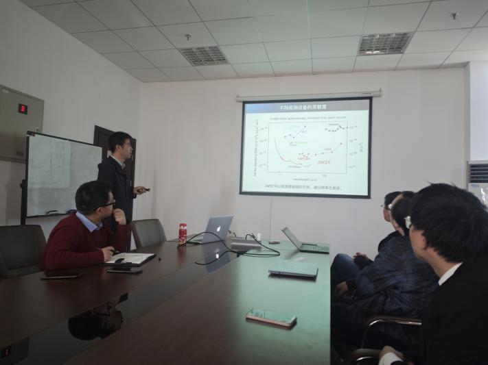 在报告会上,刘尧副研究员讲述了原行星盘与行星形成演化的关联,概述了原行星盘物理的科学前沿。行星的形成过程是一个跨越巨大时间尺度和空间尺度的物理过程,其中有许多关键环节尚未被清楚地认知。理论认为,行星形成始于原行星盘中尘埃颗粒的生长。尘埃从初始时的亚微米级尺寸通过不断的碰撞、粘结、沉降等过程,逐渐生长至卵石大小。随着原行星盘的演化,尘埃的组分也会发生变化。刘尧副研究员基于国际上针对原行星盘的理论研究与观测项目展开介绍,并结合课题组的研究工作概述了尘埃的生长和演化图像,重点讲述了近期通过分析ALMA和JWST观测数据取得的进展。报告会结束后,与会师生和刘尧老师就相关问题展开了热烈的讨论和交流。
