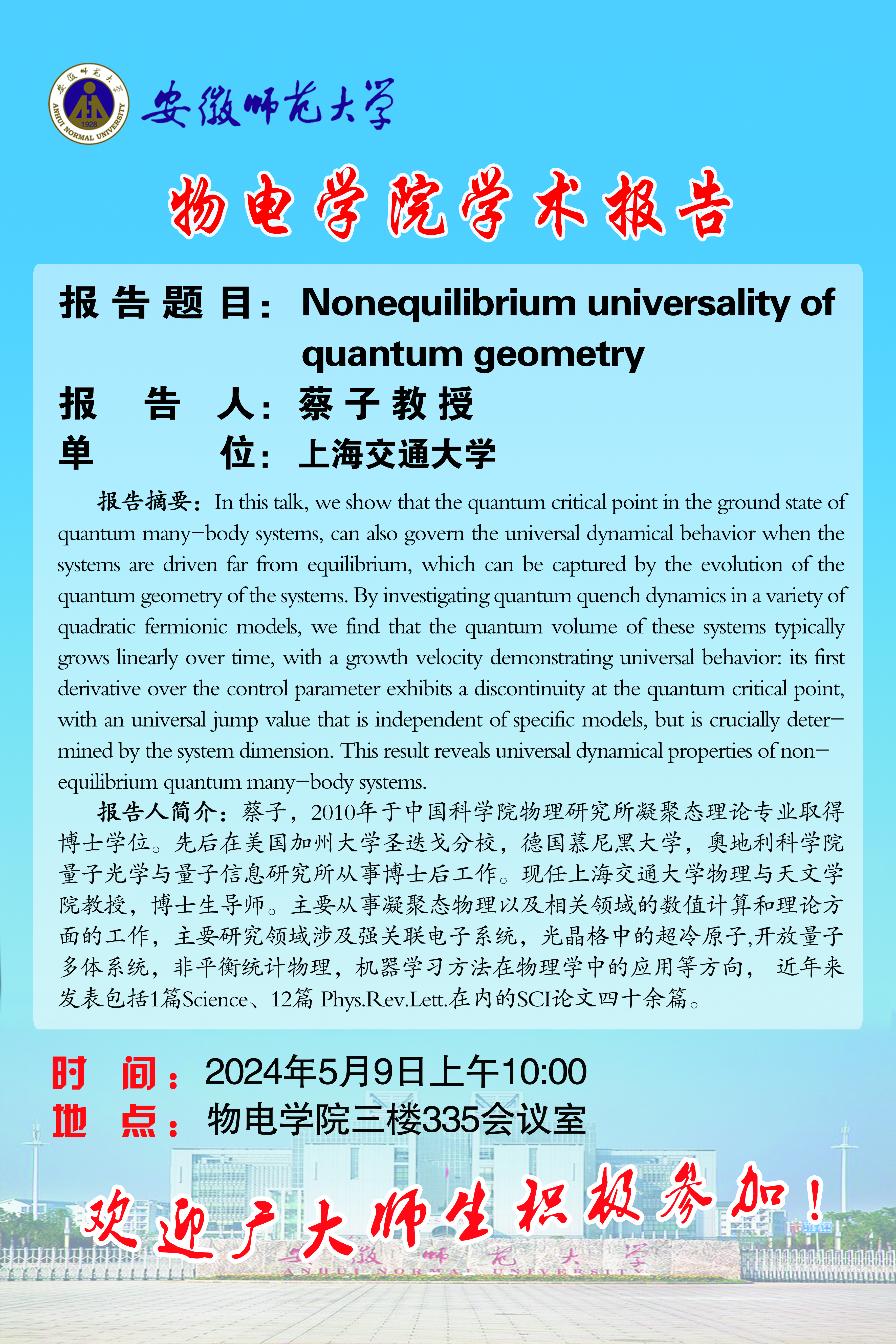 地址:花津校区-安徽省芜湖市九华南路189号 邮编:241000 电话:0553--3869894