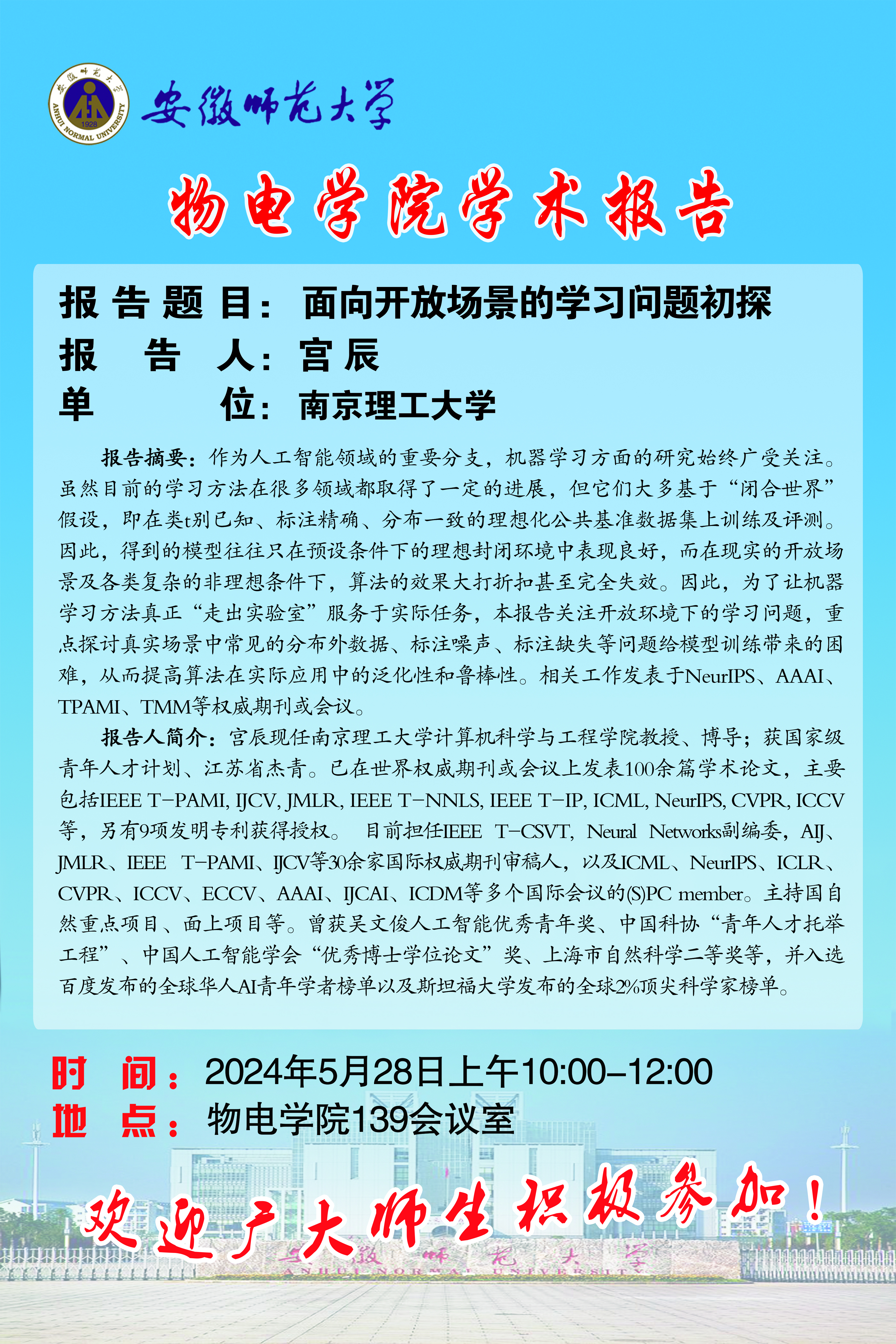 地址:花津校区-安徽省芜湖市九华南路189号 邮编:241000 电话:0553--3869894