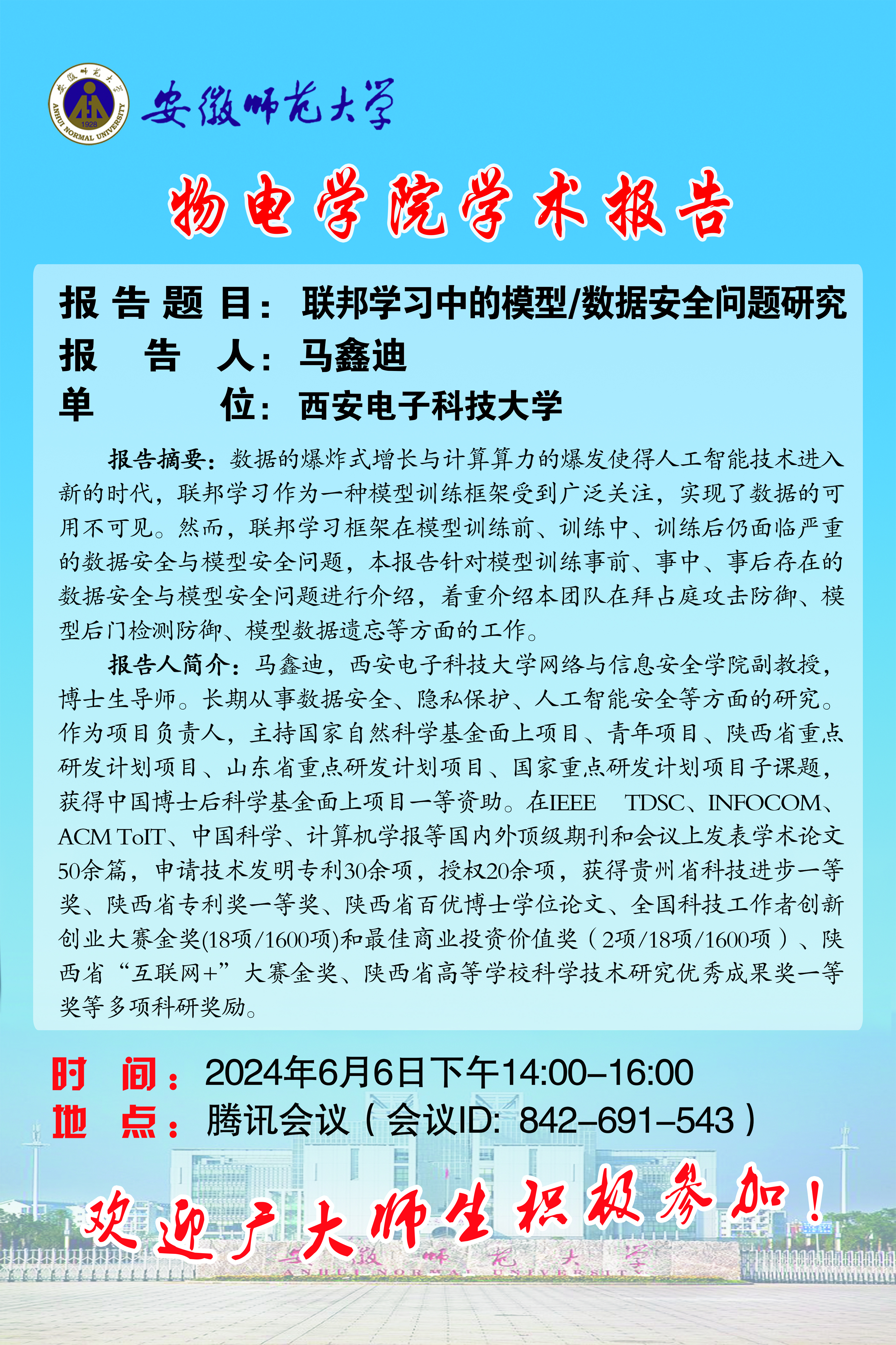 地址:花津校区-安徽省芜湖市九华南路189号 邮编:241000 电话:0553--3869894