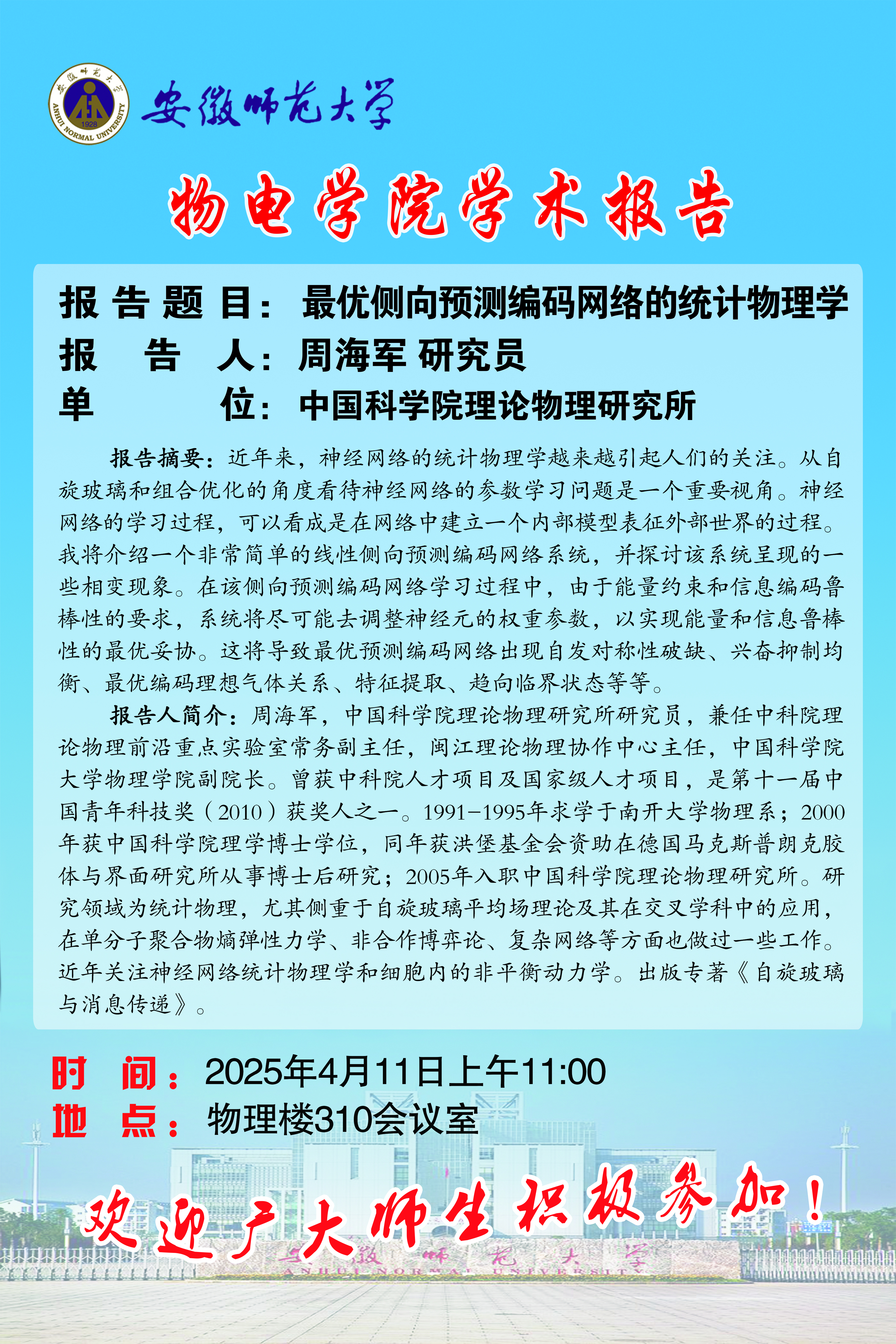 地址:花津校区-安徽省芜湖市九华南路189号 邮编:241000 电话:0553--3869894