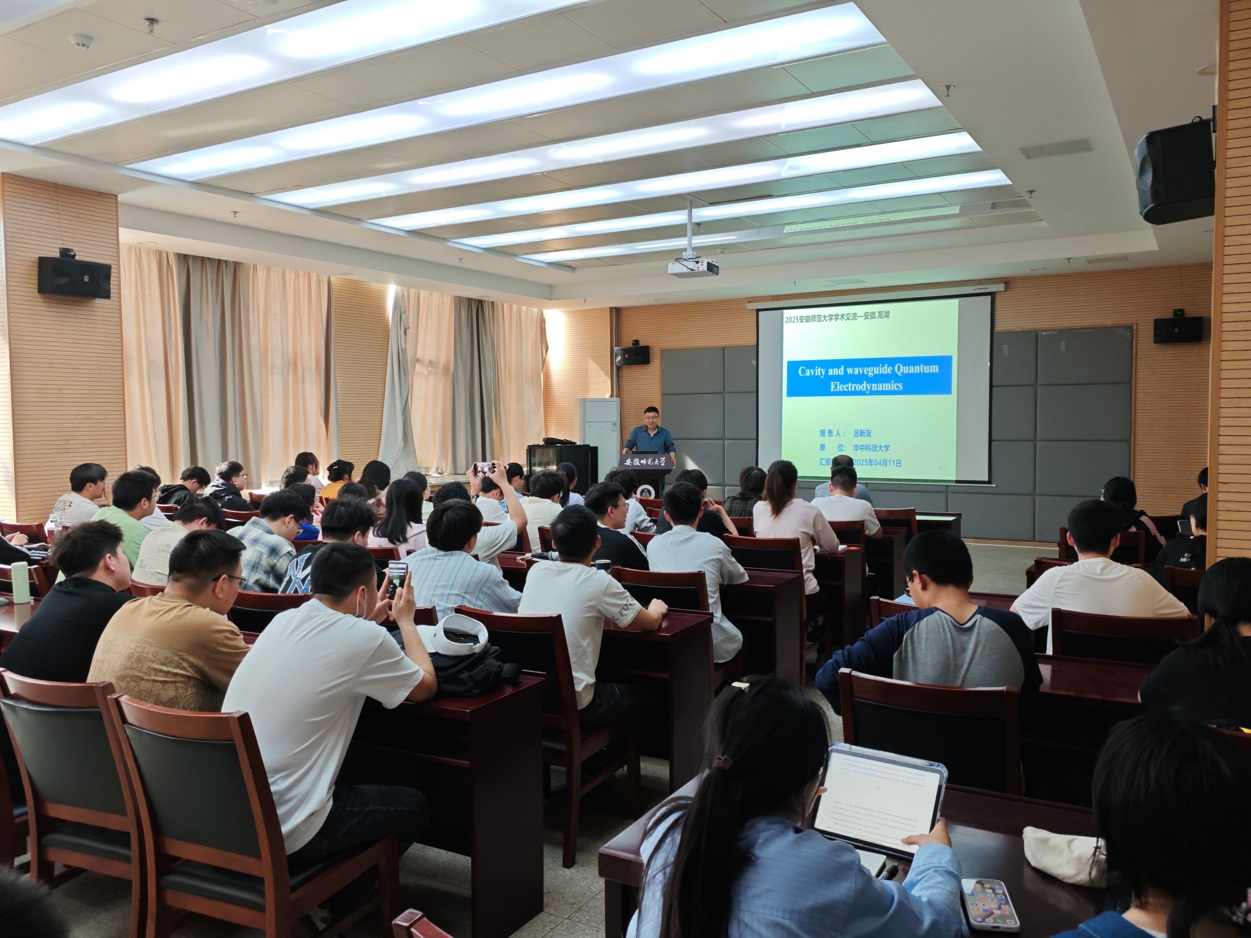 吕新友教授在报告中系统阐述了其课题组在腔与波导量子电动力学(QED)领域取得的前沿研究成果。首先,研究团队在腔QED系统中发现了非互易量子效应的突破性现象,揭示了非互易超辐射相变的新机制,并首次观测到多原子协同辐射的捆绑辐射效应。进一步在波导QED体系中,他们通过精准调控光子-原子手性相互作用,实现了突破传统理论极限的完美光子阻塞效应,该成果为单光子源制备提供了创新方案。特别值得关注的是,课题组在拓扑波导QED系统中取得重要进展:通过构建新型量子耦合体系,不仅发现了由拓扑边界态诱导的长程关联现象。这些原创性工作突破了传统QED体系的物理边界,为量子信息处理芯片设计提供了新范式,同时为模拟复杂量子物态开辟了新路径。报告结束后,与会师生就拓扑量子模拟的可控性、非互易器件的量子极限等问题同吕新友教授展开了深入交流。相关成果发表于《Physical Review Letters》等顶级物理学期刊上。