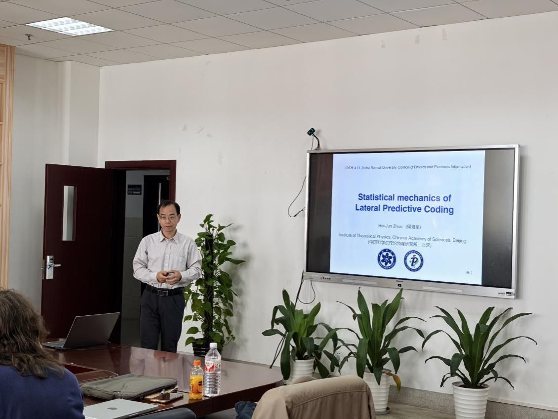 邀请,中国科学院理论物理研究所周海军研究员于4月11日来校进行学术交流,并做了题为《最优侧向预测编码网络的统计物理学》的学术报告。报告会在学院310会议室举行,会议由包子漫画
