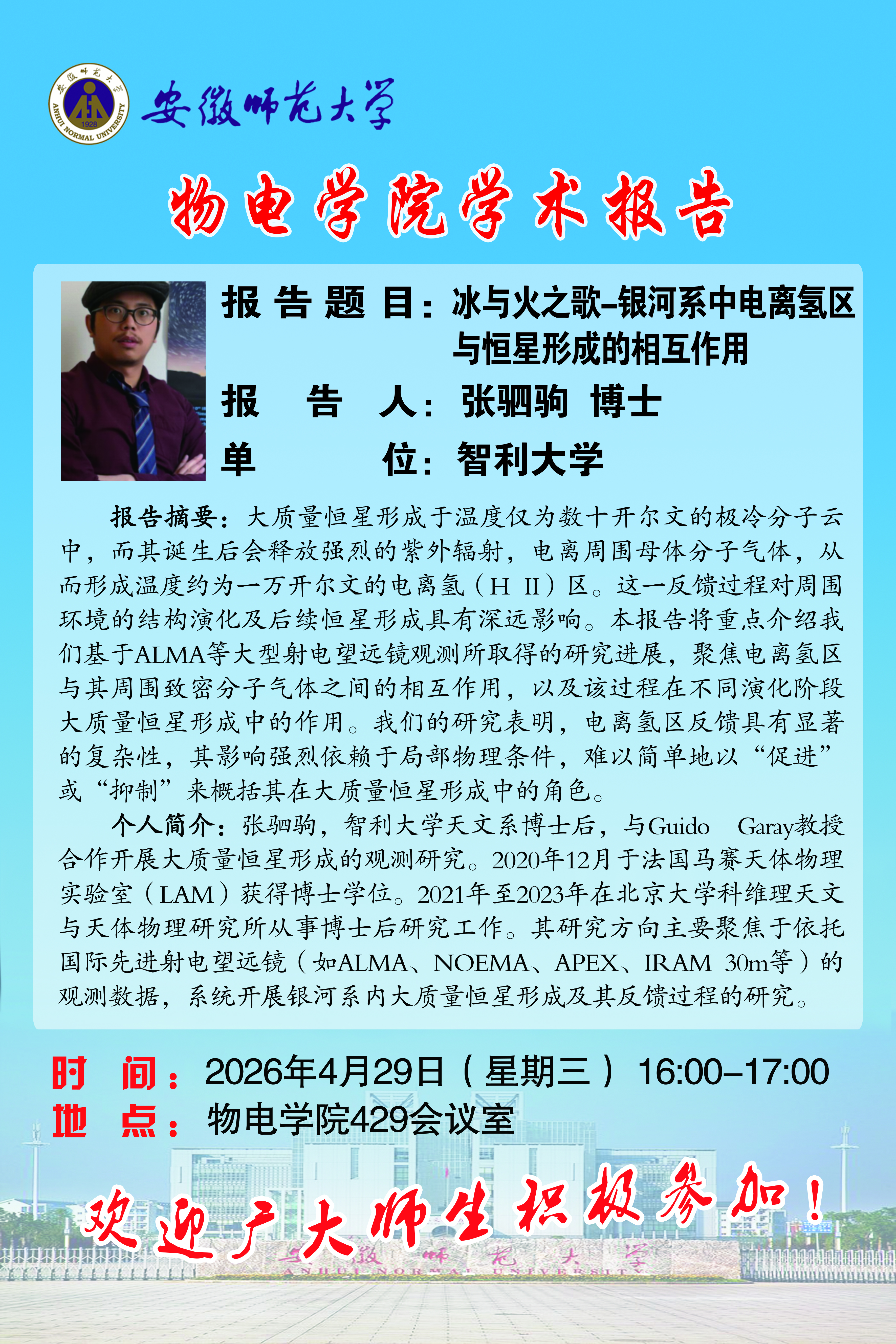 【学术预告】物电讲坛2026年第11期:冰与火之歌-银河系中电离氢区与恒星形成的相互作用
