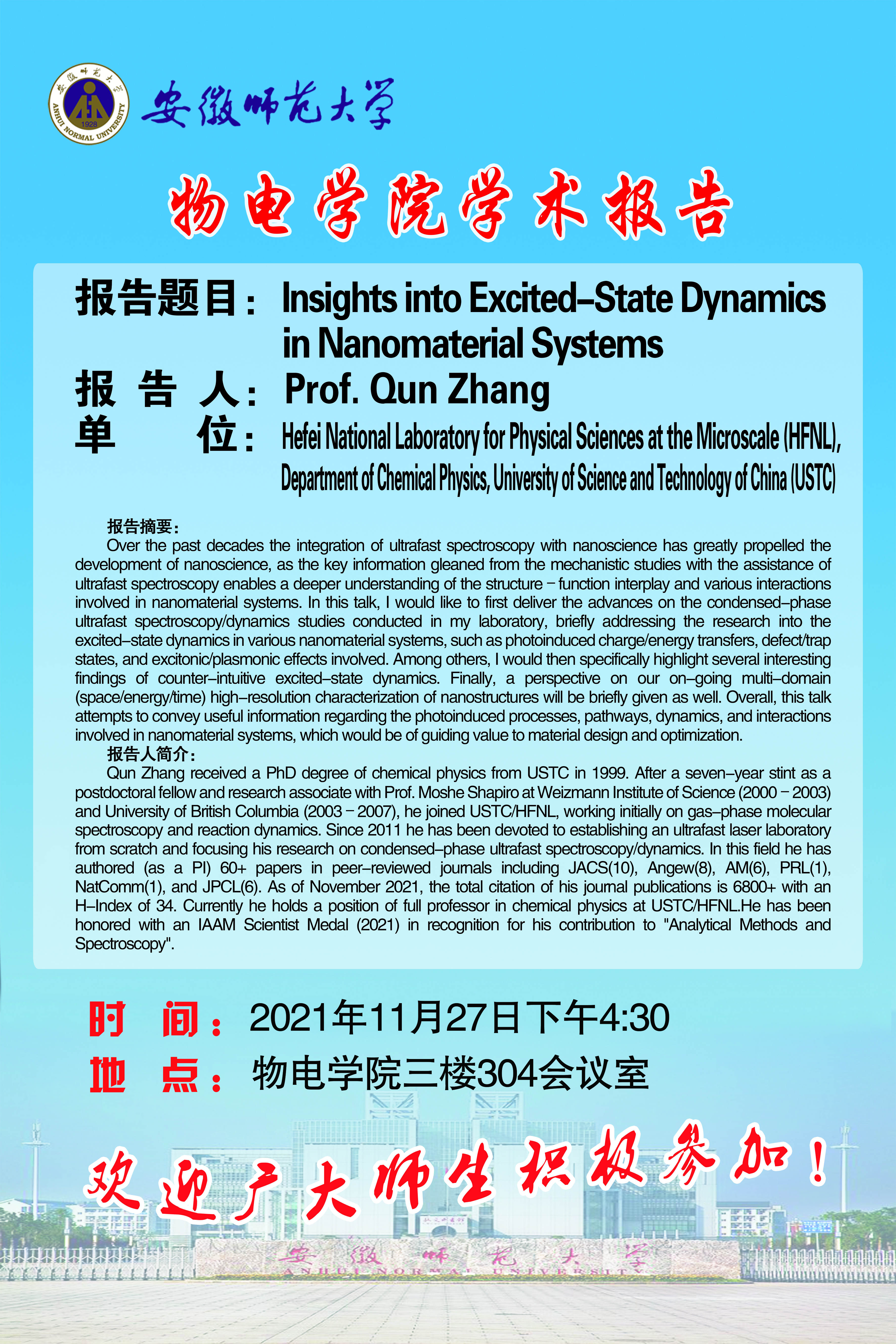 地址:花津校区-安徽省芜湖市九华南路189号 邮编:241000 电话:0553--3869894