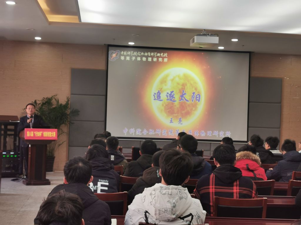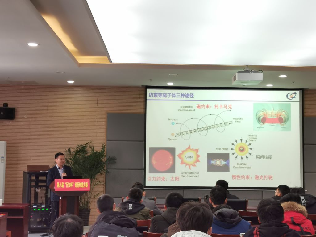 讲座中王亮研究员从电影中出现的核聚变行星发动机、核聚变方舟反应堆等科幻故事出发,引出了“人造太阳”工程的重要性和迫切性,并就其可行性以及其中涉及到的聚变过程作了详细讲解,让同学们清楚地了解到核聚变的未来广阔应用前景以及其中涉及到的关键问题和我们所面临的挑战。另外,王亮研究员介绍了我国在“ITER”项目中担任的重要角色,以及中科院等离子体物理研究所的“EAST”装置在该研究领域所创造的多项世界纪录。我国科学家们在聚变研究领域取得的卓越成就,深深感染和鼓舞了在场的学生。
