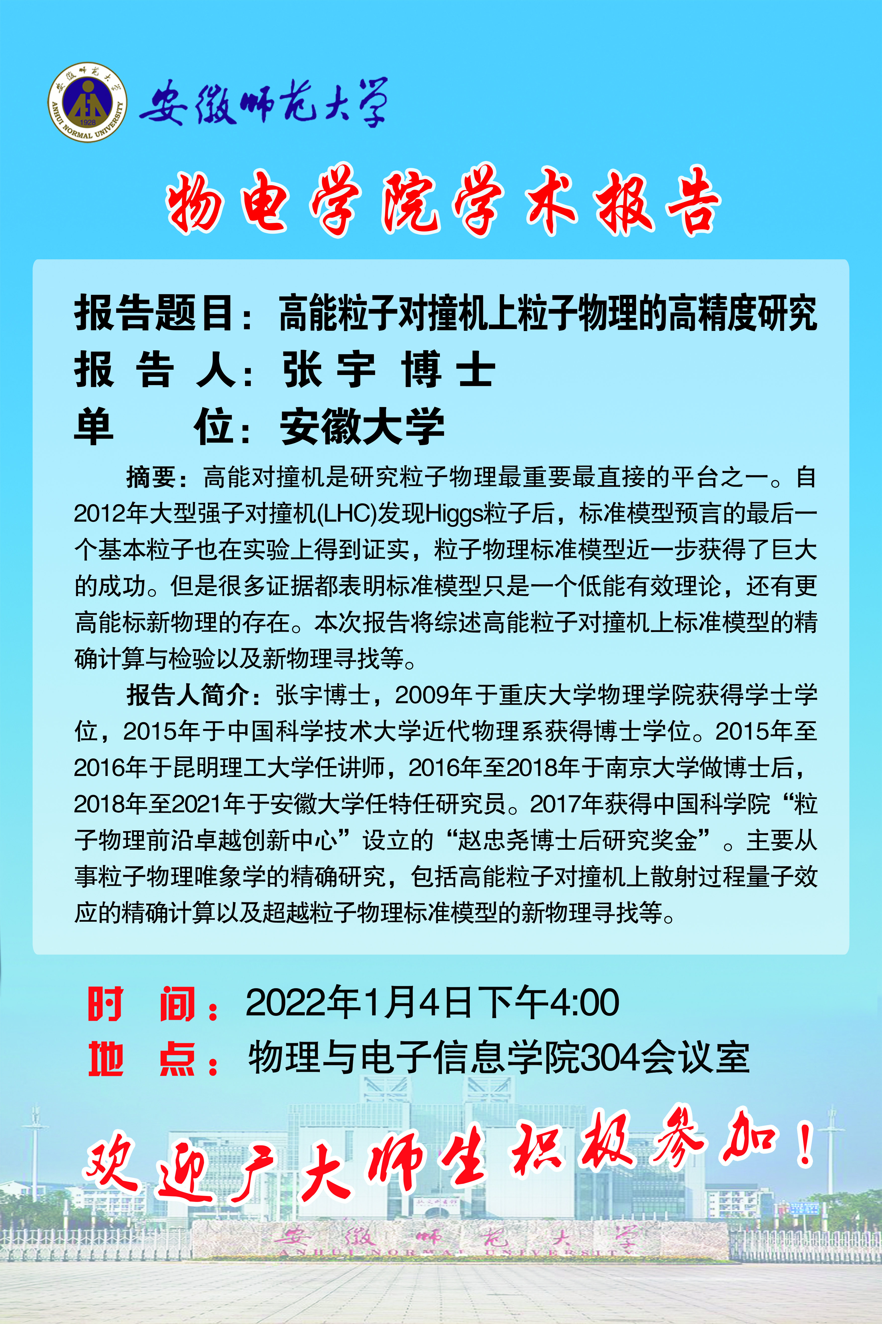 地址:花津校区-安徽省芜湖市九华南路189号 邮编:241000 电话:0553--3869894