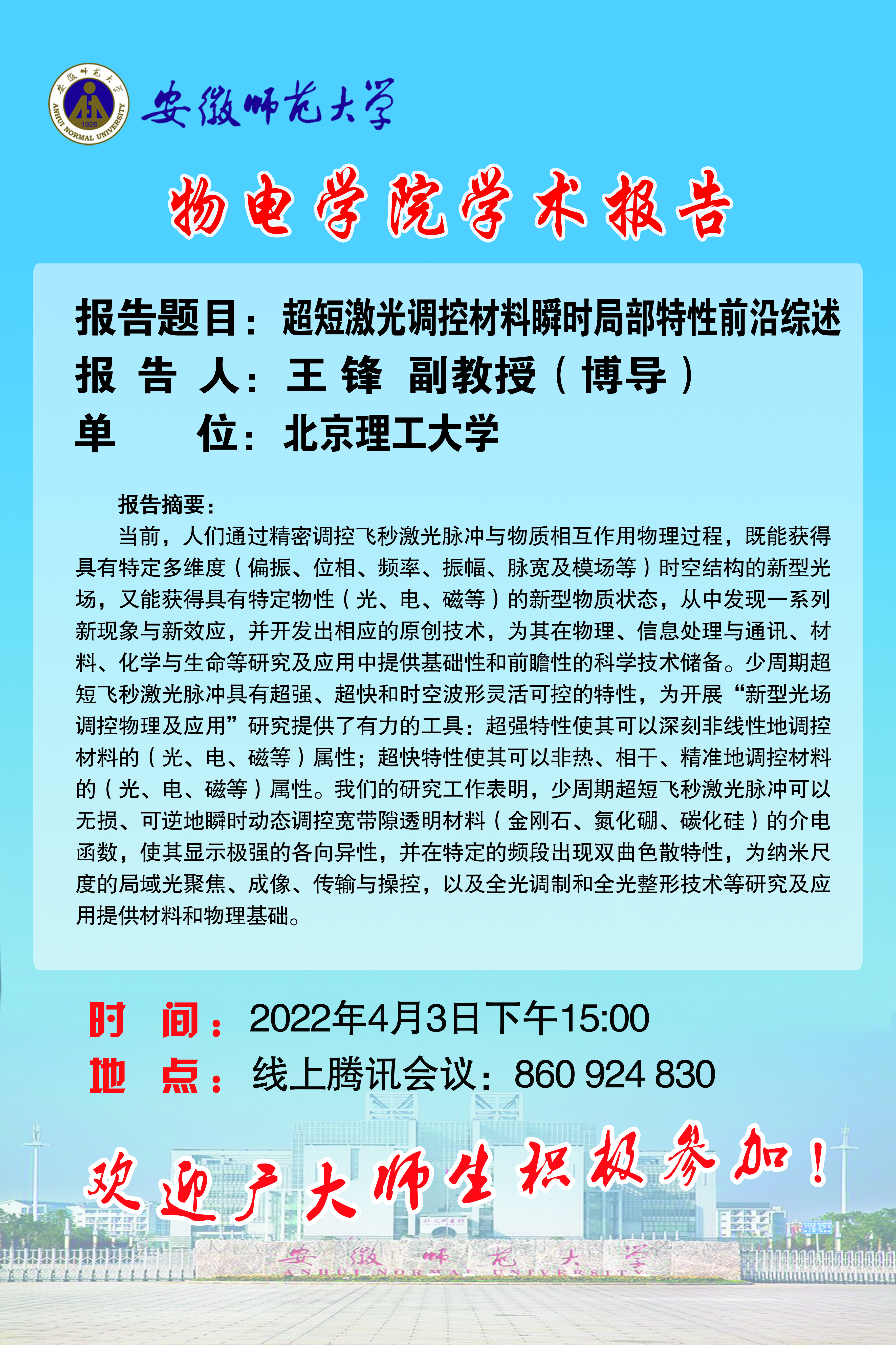 地址:花津校区-安徽省芜湖市九华南路189号 邮编:241000 电话:0553--3869894