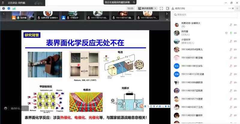 师生开展线上学术交流,并作了题为《表面化学动力学》的学术报告。报告会通过腾讯会议(会议号:443949315)举行,由包子漫画