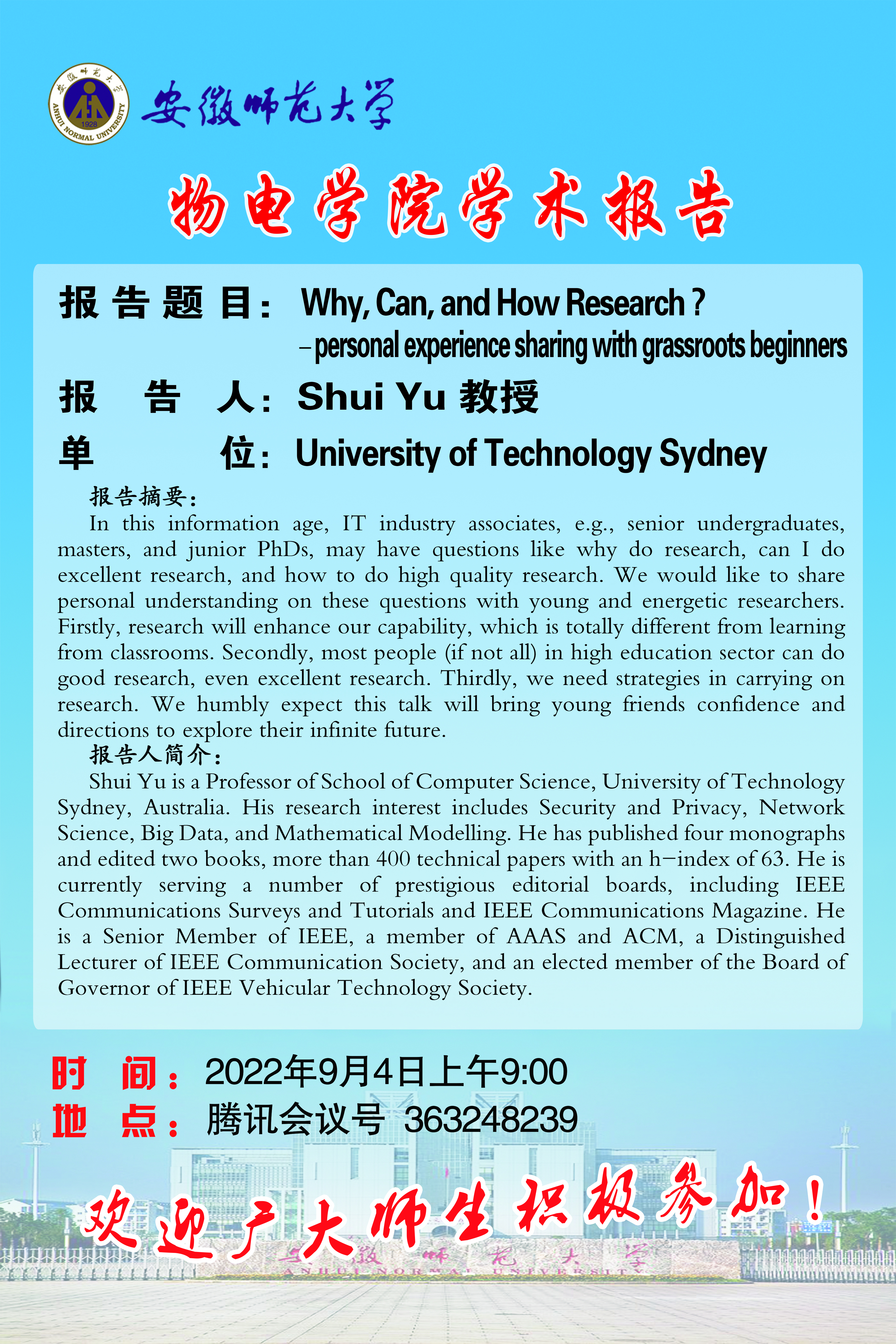 【学术预告·物电讲坛】Why, Can, and How Research? – personal experience sharing with grassroots beginners