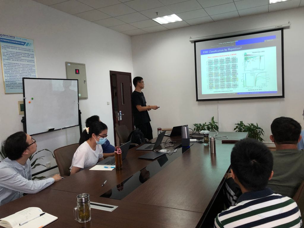 报告会上,肖笛副研究员简要介绍了快速射电暴的概念、研究背景及意义。随后,肖笛副研究员介绍了快速射电暴近五年的研究进展,伴随现有射电望远镜的升级与观测技术的进步,快速射电暴的观测事件数快速累积,目前总数已超千例。科学界对快速射电暴的关注度持续上升,每年均有多个重大的观测突破进展出现。然而这些观测背后隐藏的内在物理,目前还显得扑朔迷离。与此同时,肖笛副研究员还详细讲述了FRB的观测特性与基本物理,并通过结合最新的观测进展,讲述了探索本领域一些重要的未解之谜。报告会结束后,肖笛副研究员同与会师生就相关问题展开了热烈讨论和交流。