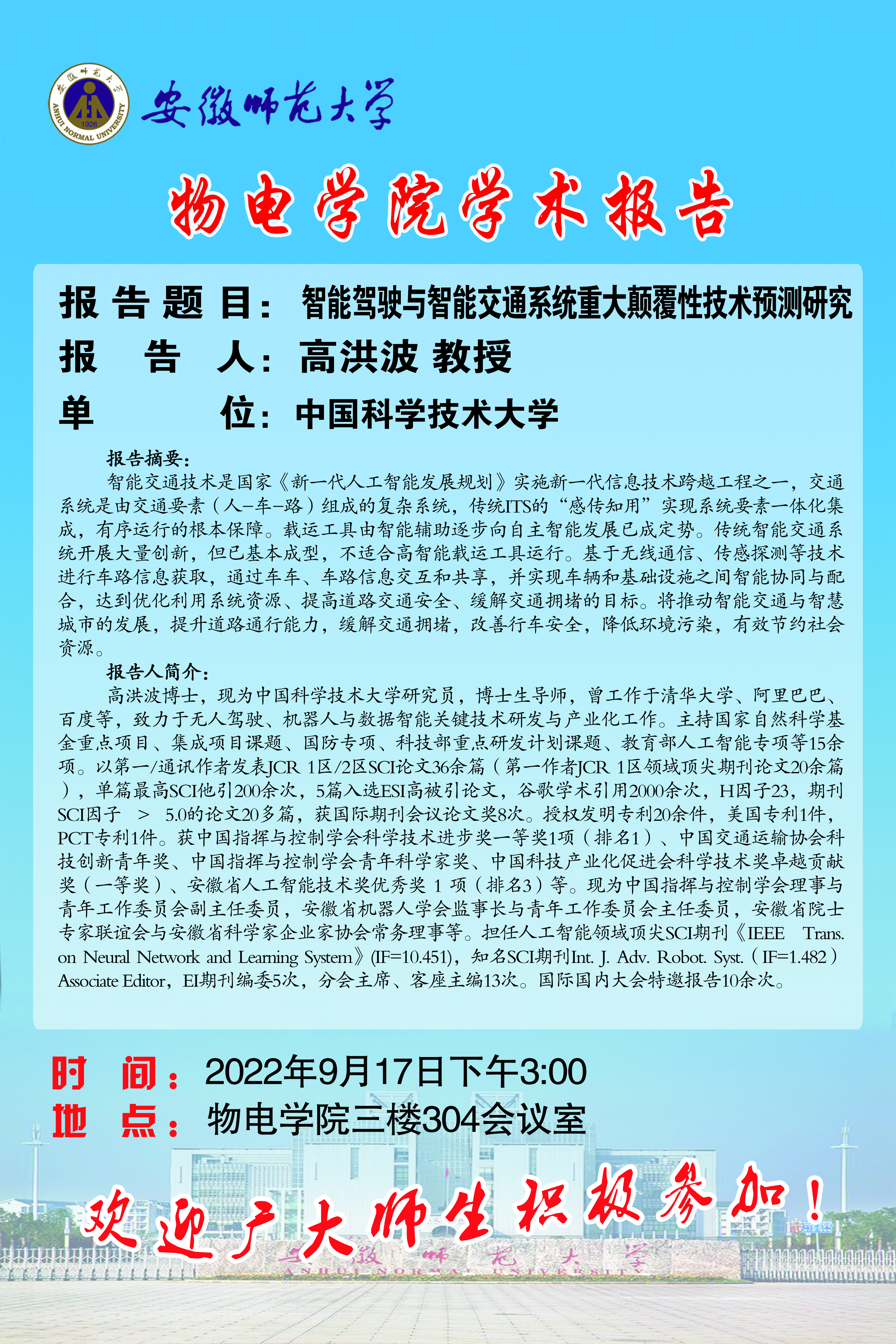 地址:花津校区-安徽省芜湖市九华南路189号 邮编:241000 电话:0553--3869894