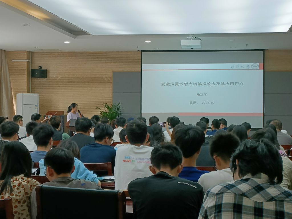 邀请,安徽大学喻远琴教授于9月22日来校进行学术交流,并做了题为《受激拉曼散射光谱偏振效应及其应用研究》的学术报告。报告会在学院304会议举行,会议由包子漫画