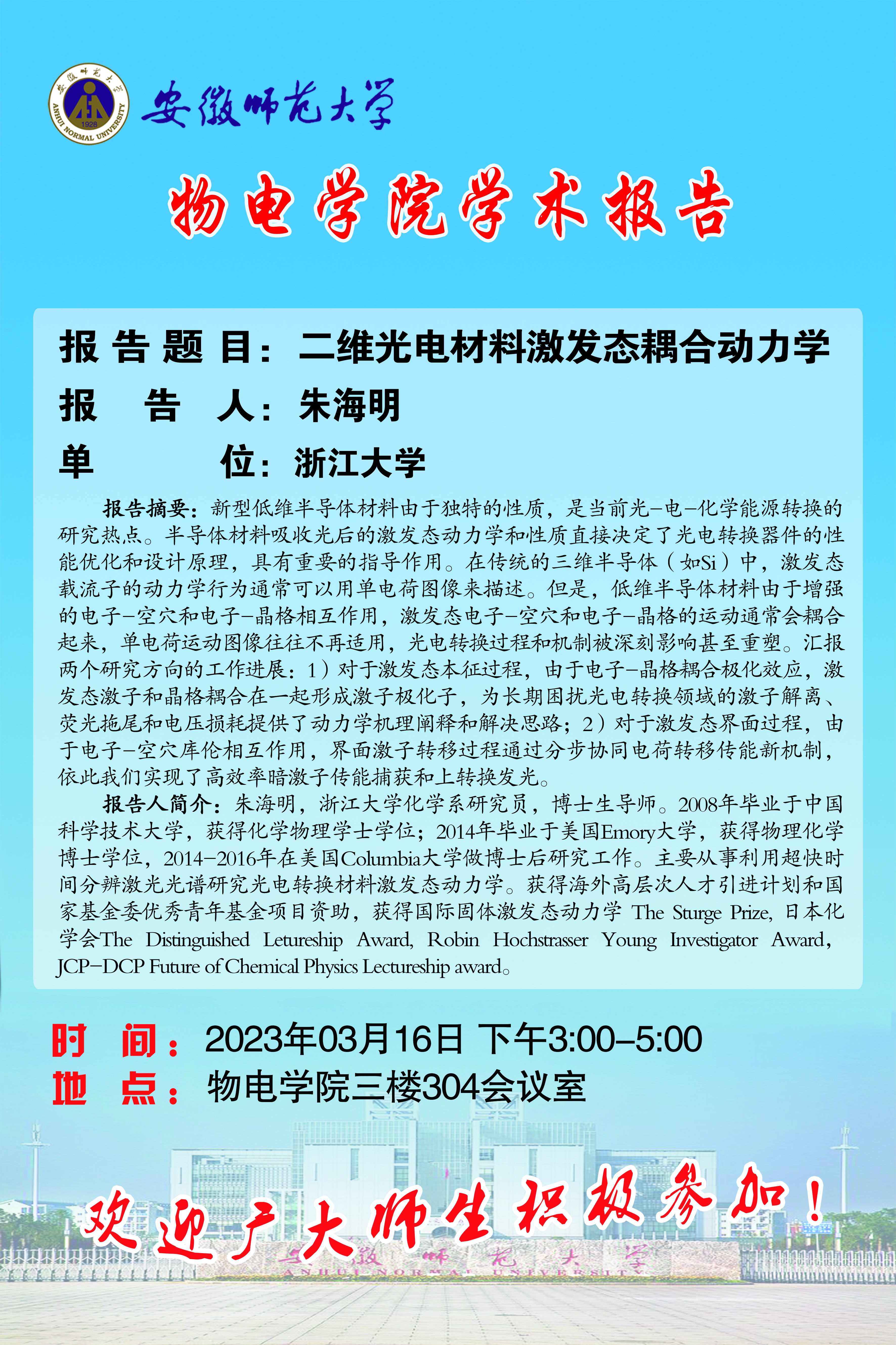 地址:花津校区-安徽省芜湖市九华南路189号 邮编:241000 电话:0553--3869894