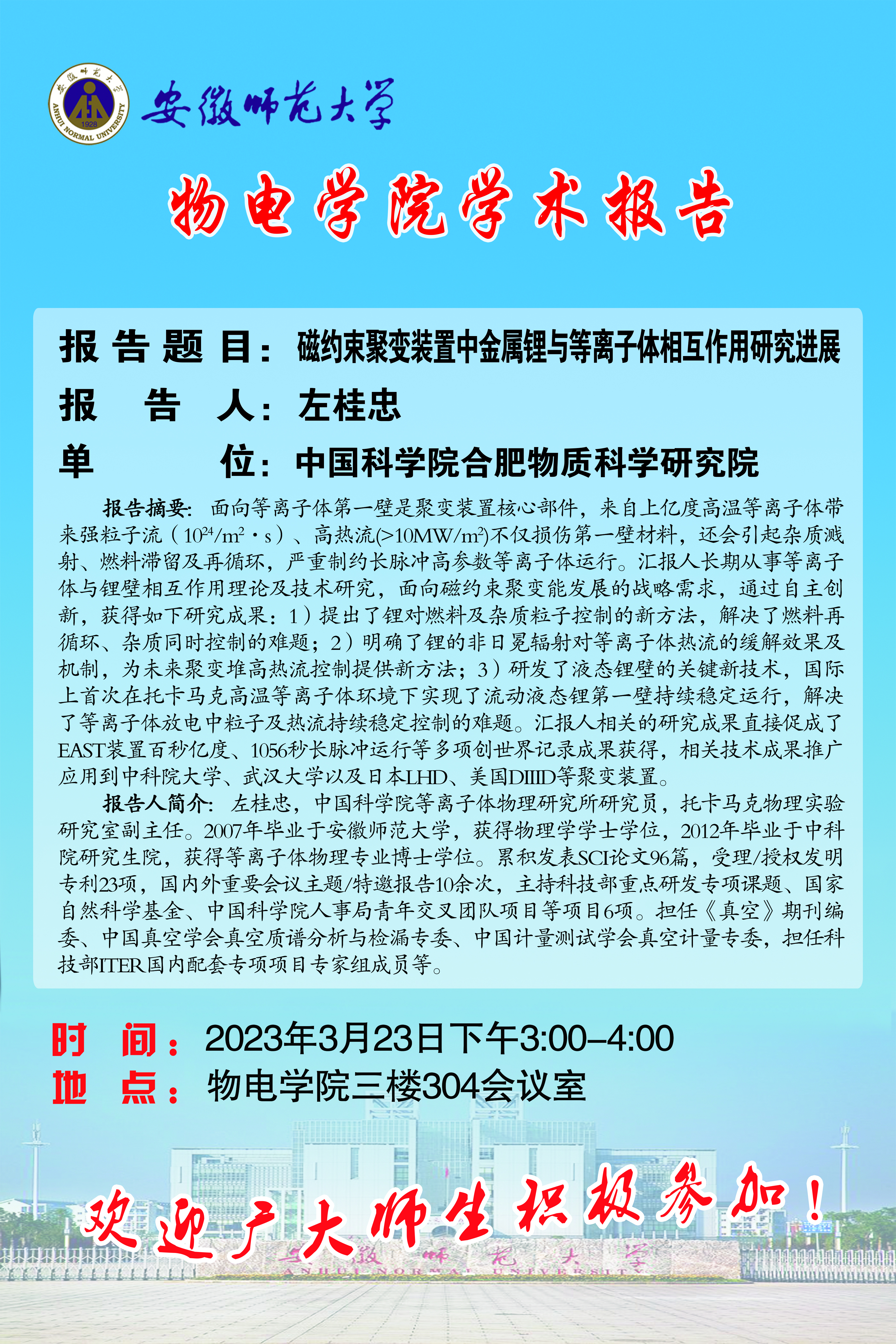地址:花津校区-安徽省芜湖市九华南路189号 邮编:241000 电话:0553--3869894