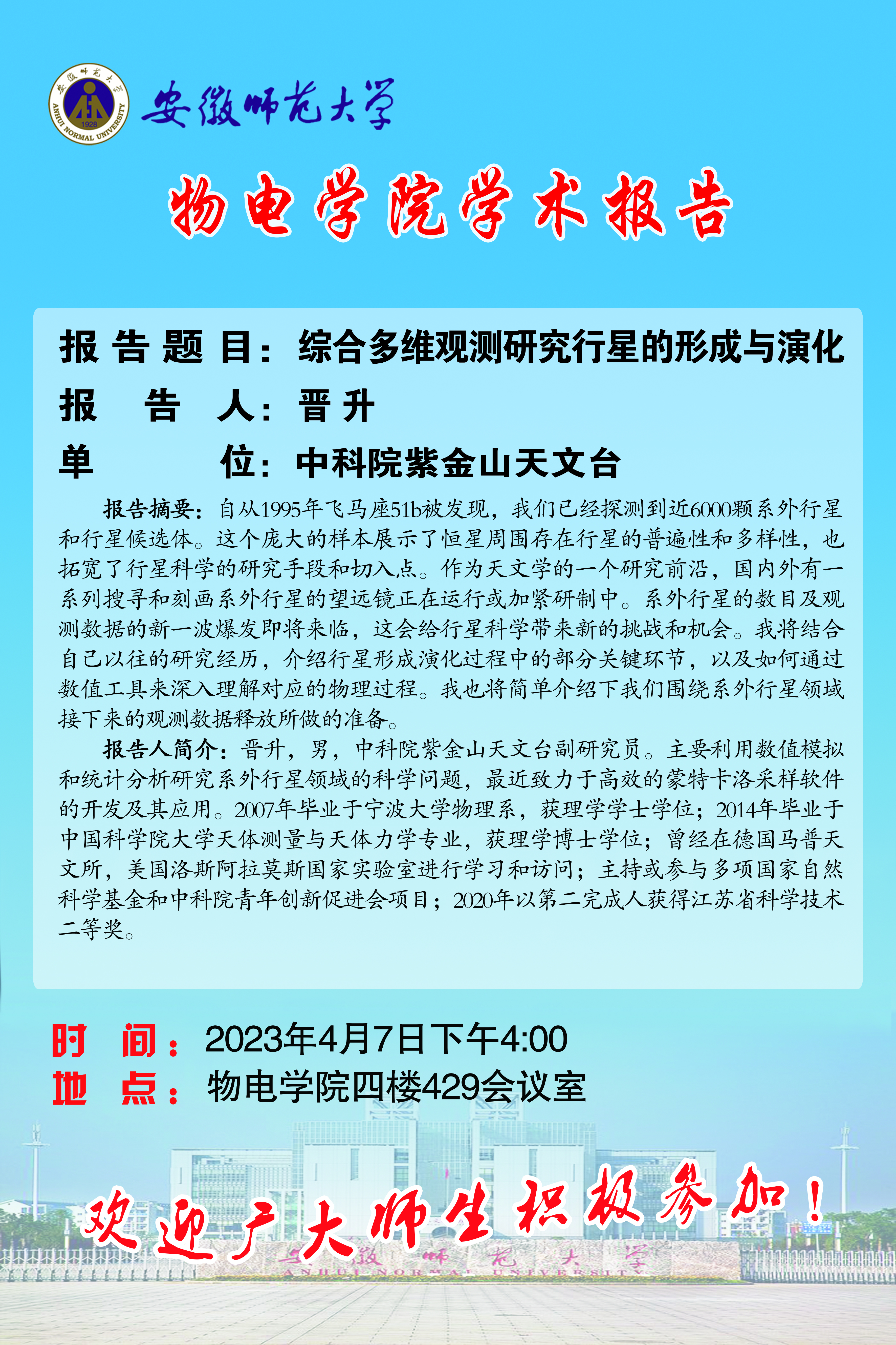 地址:花津校区-安徽省芜湖市九华南路189号 邮编:241000 电话:0553--3869894
