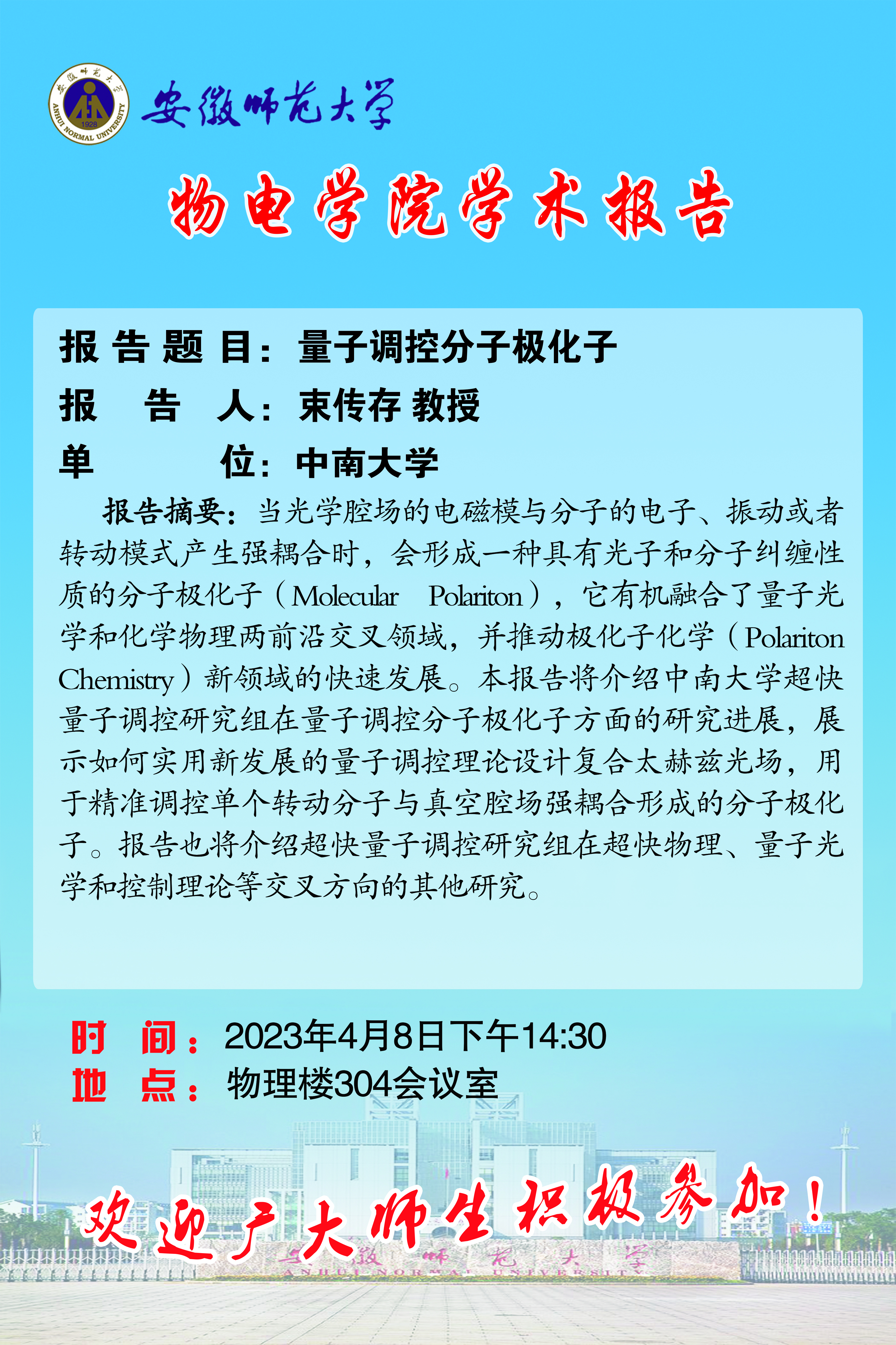 地址:花津校区-安徽省芜湖市九华南路189号 邮编:241000 电话:0553--3869894