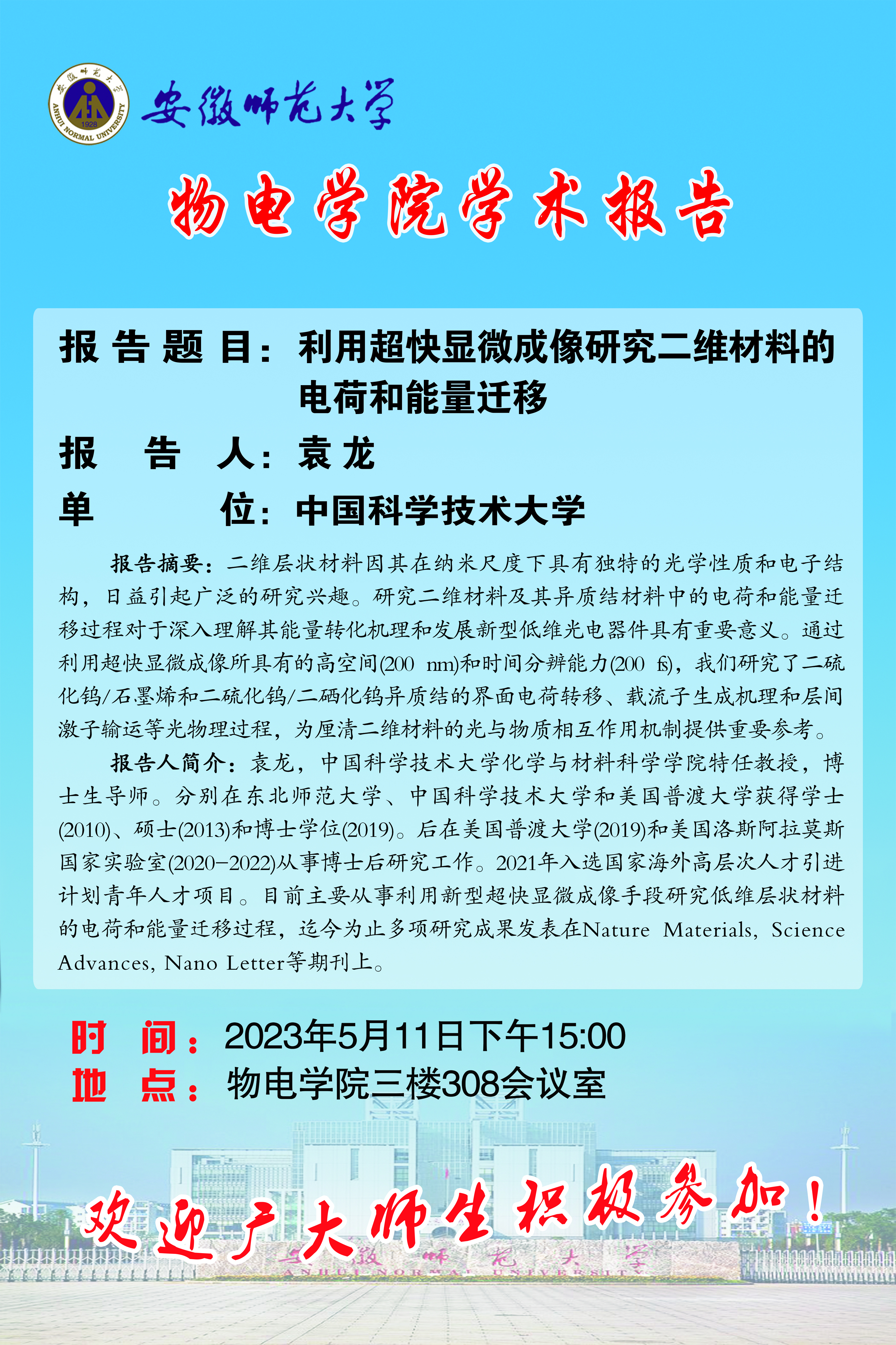 地址:花津校区-安徽省芜湖市九华南路189号 邮编:241000 电话:0553--3869894