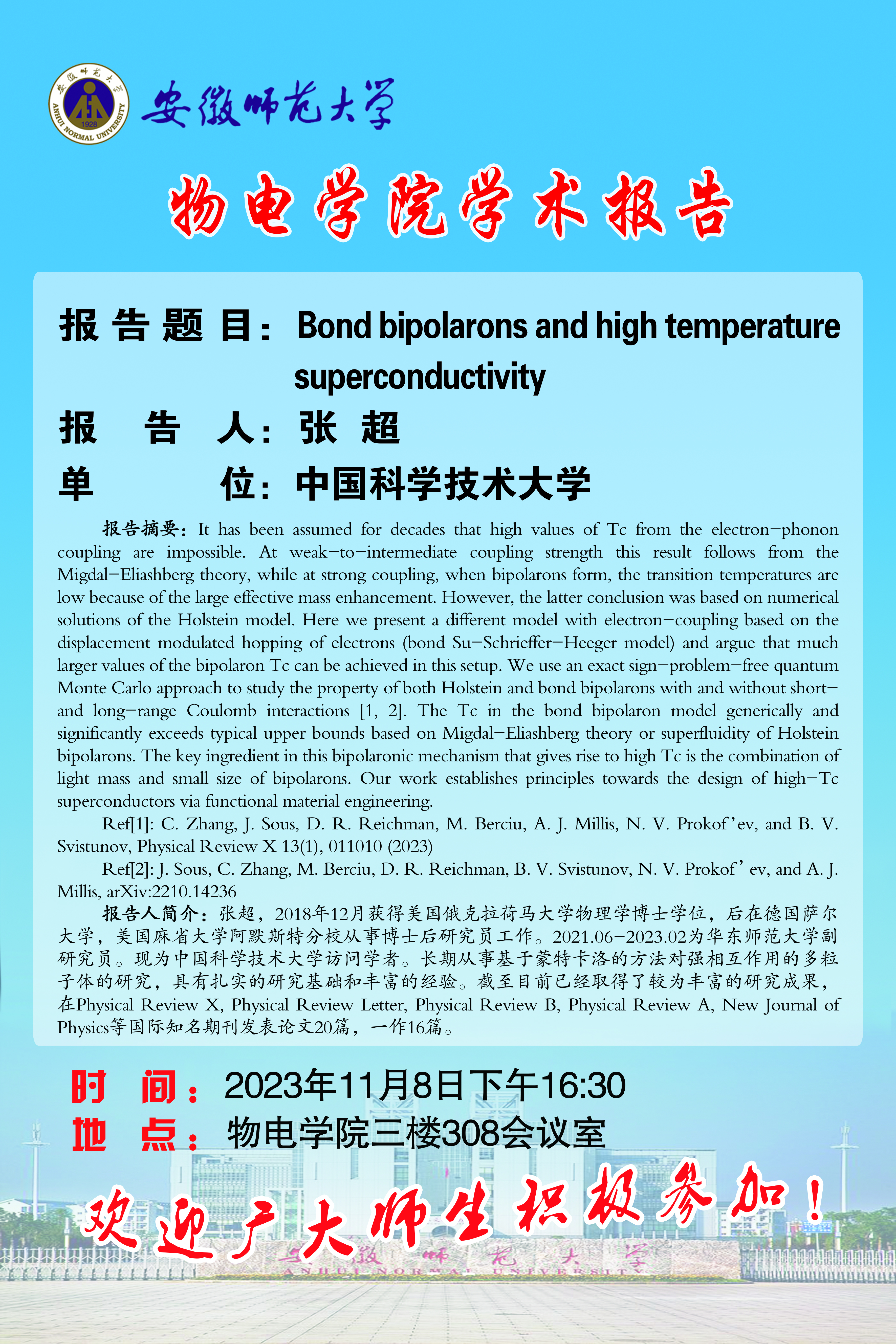 地址:花津校区-安徽省芜湖市九华南路189号 邮编:241000 电话:0553--3869894