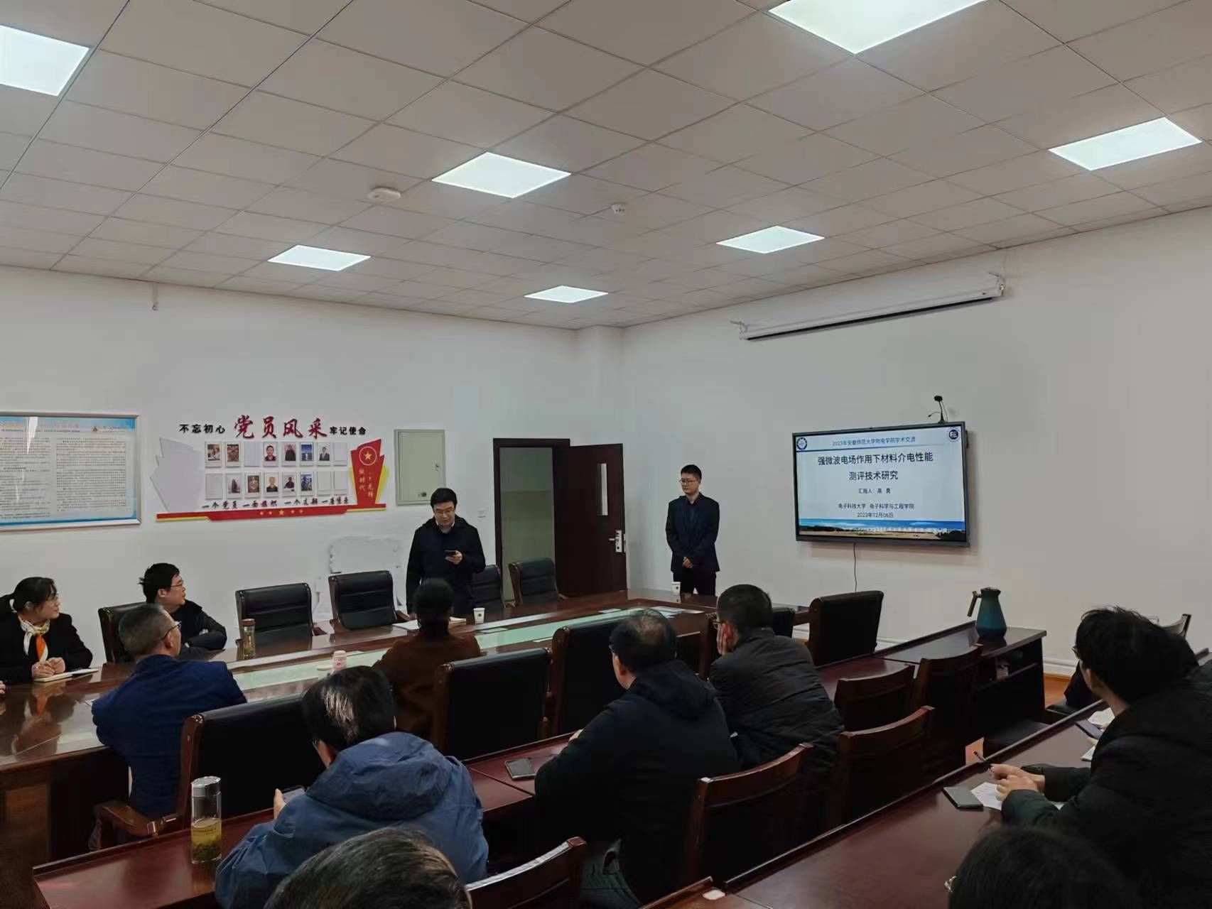 报告会上,高勇副研究员介绍了强微波电场作用下材料介电性能测评研究背景,他指出:材料的介电性能直接影响其应用的电路及系统的稳定性和可靠性。强微波电场作用下材料的介电性能将发生非线性演变,甚至畸变,并指出强微波电场作用下材料介电性能评测存在的科学问题。随后,高勇副研究员结合自己的研究工作同与会师生分享了材料介电性能的测试方法及强微波场环境构建方法。首次建立了强微波电场作用下材料介电性能测试模型与系统,通过测量验证了微波非热效应的存在。阐述了微波非热效应容易被微波热效应淹没,导致前者难以被检测;通过建立微波非热效应分离提取模型,将其从微波热效应影响中剥离开来,进而建立微波非热效应形成机理、特征分析系统,揭示微波非热效应影响机理;建立微波非热效应影响水平量化模型与方法,为强微波电场作用下材料介电性能演变规律和机理分析提供新的有效靶点。报告会结束后,与会师生就相关问题同高勇副研究员展开了热烈讨论和交流。