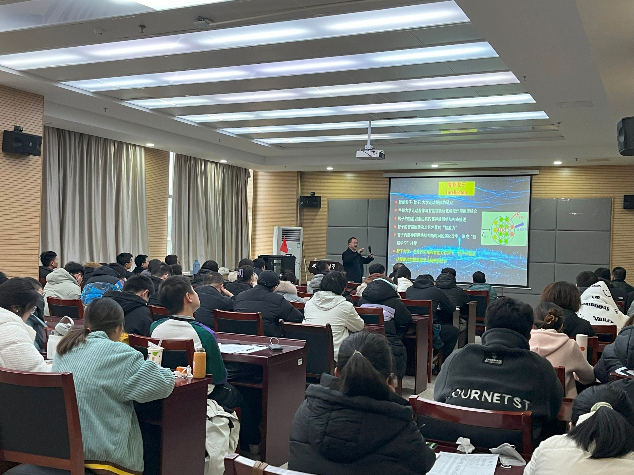 报告会上,帅建伟教授结合自己30年的研究经历,从硕士学习、博士研究、国外留学,以及回国科研经历谈起,特别是关于系统生物学的兴起、生物组学数据的爆发增长以及深度学习的发展繁荣。会上,帅建伟教授详细介绍了智子力学和智能融合生命体的前沿进展,通过智能单摆模型解释了从强化学习到智能力的转化,同与会研究生分享了“人工智能+物理学”的研究心得,以及生物物理和统计物理的未来研究展望。报告会结束后,与会师生就相关问题同帅建伟教授展开了热烈讨论和交流。