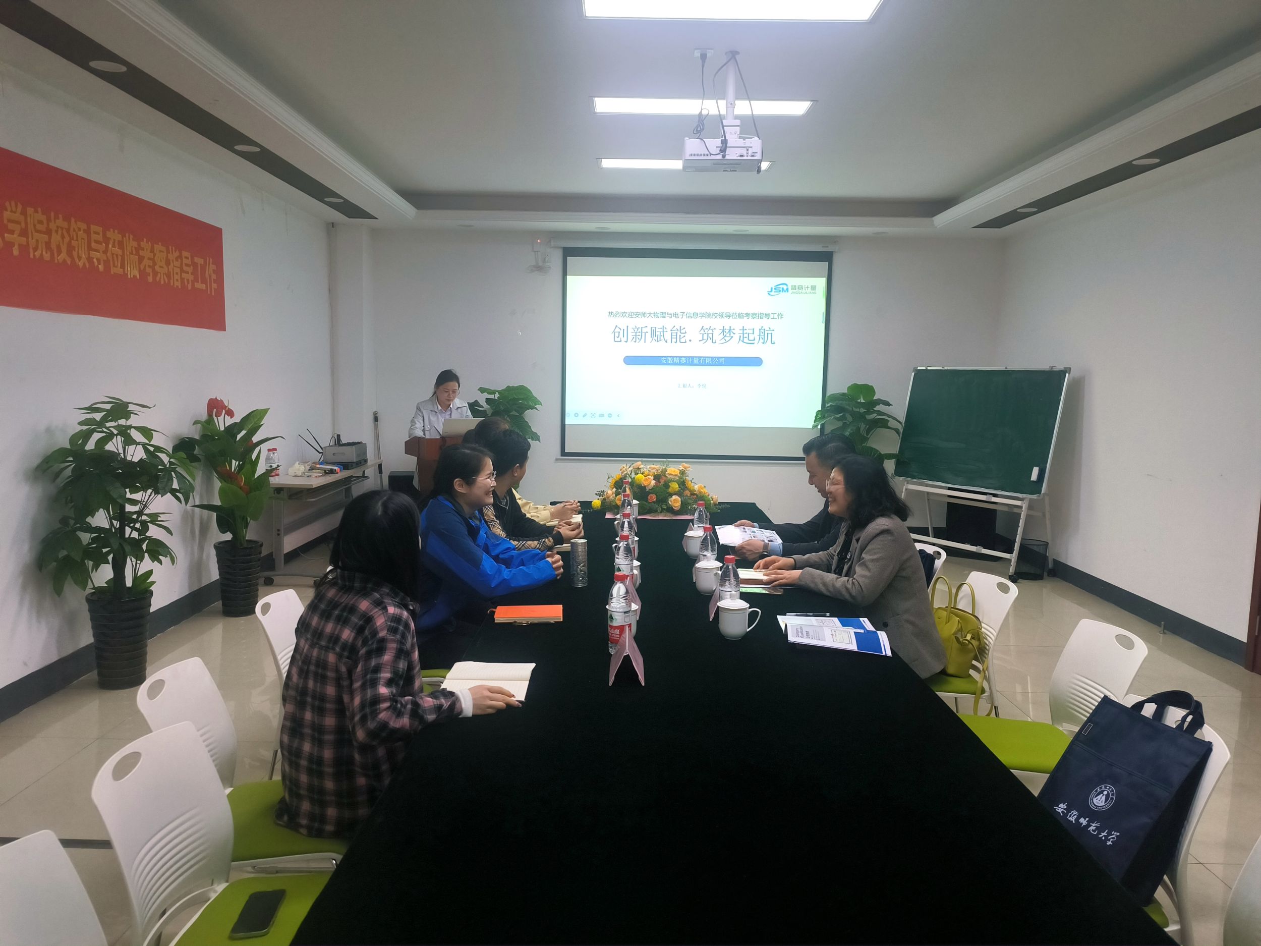 在安徽精赛计量有限公司,公司负责人李悦热情接待了学院一行,在座谈会上,李悦感谢学校一直以来对她的培养和关心,介绍了自己和公司共同成长的历程,双方就毕业生精准就业、产学研合作、实习实践基地建设达成了一致。