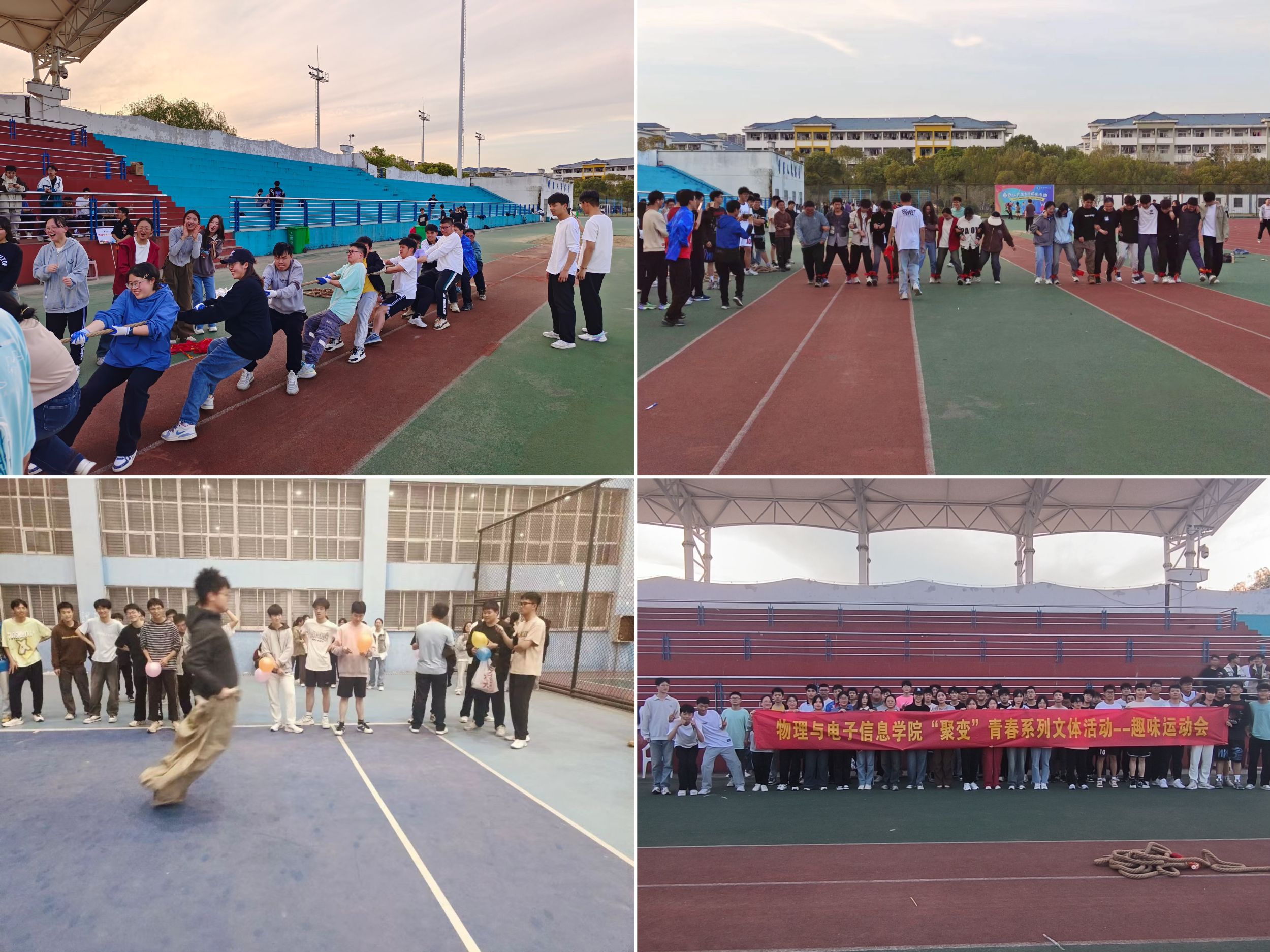 举办“聚变”青春系列文体活动--趣味运动会,比赛历时两周,来自学院2022、2023级20个行政班的同学参加了比赛。