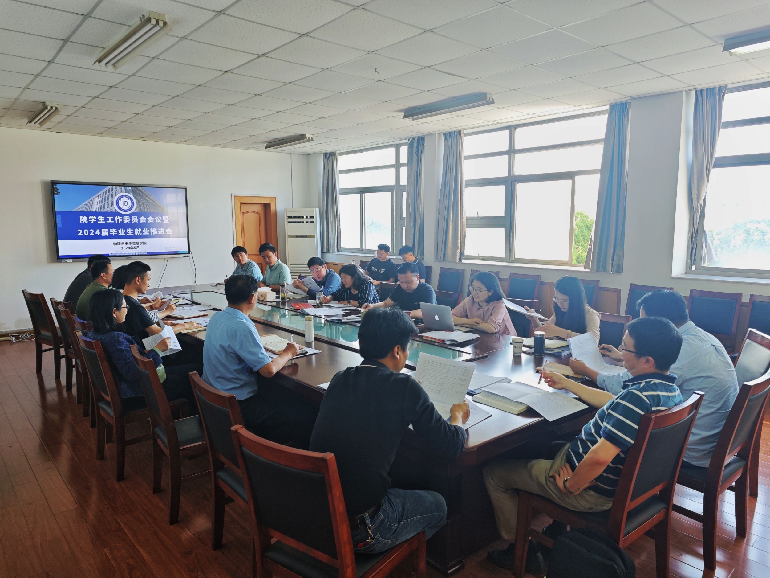 在学苑6号楼408会议室召开学生工作委员会会议暨2024届毕业生就业推进会。学院领导班子、各专业负责人、教工委员代表和全体辅导员参会,会议由院党委书记李娟主持。