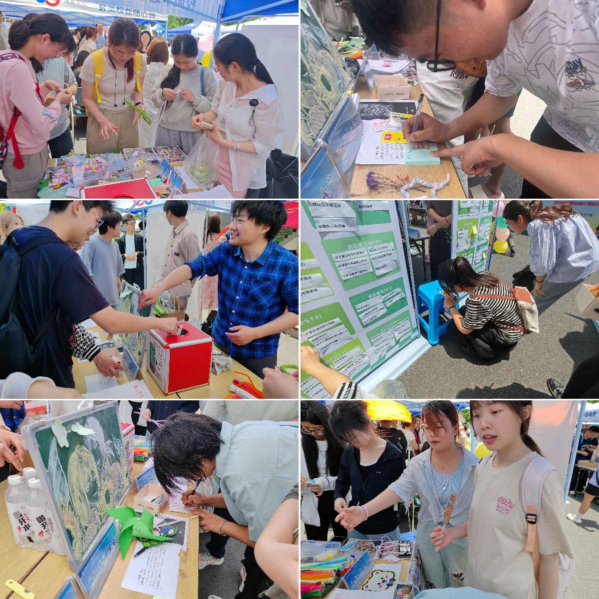 在学校心理健康中心的统一组织下,学院发展辅导站在二食堂广场开展了“解忧”黑板、我定义“我”、送你“花花”和时光“邮局”趣味体验活动,参与同学可通过温馨小屋闯关集卡兑换精美礼品。活动吸引了兄弟学院的学生驻足观看、排队体验,同学们在体验游戏的同时既学习心理知识,又释放心中压力。