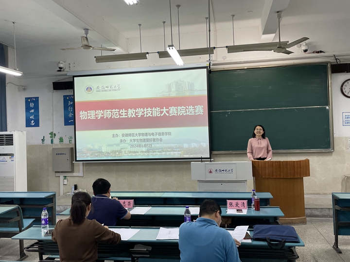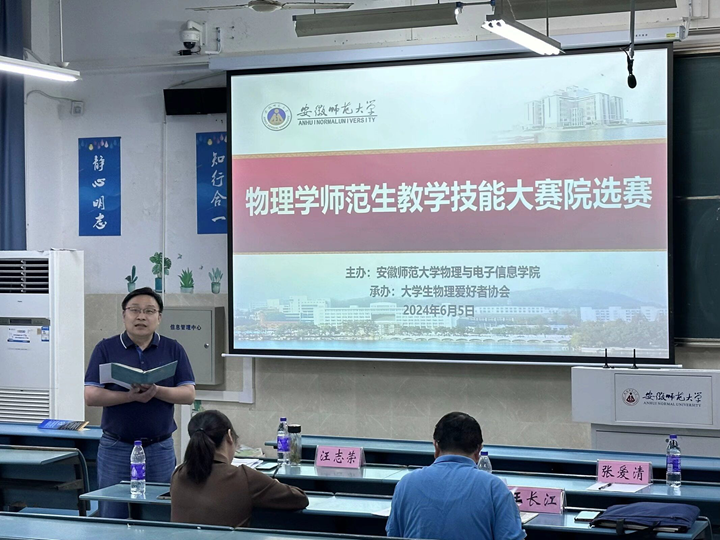 为切实推动基础教育振兴行动计划落实落地,进一步增强师范生教育教学实践能力和创新能力,由包子漫画 主办,大学生物理爱好者协会(以下简称“物协”)承办的物理学师范生教学技能大赛于6月5日下午在教学楼1号楼2010205教室举办。学院副院长张爱清出席并作赛前动员讲话,物理系副主任汪志荣,专业教师王长江、徐玲担任此次大赛的评委。比赛由物协刘天浩同学主持。