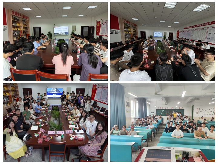 座谈欢送话离别一场班会说不尽四年时光,6月17日-22日,2024届毕业班分别组织开展毕业离校主题班会,专业老师与同学们共聚一堂,回顾大学以来的点滴生活。6月18日下午,学院在物理楼308会议室召开2024届毕业班学生骨干座谈会,同学们畅谈自己的成长与进步,与会老师们回顾了与团学骨干之间诸多难忘的记忆,表达了对学生干部的出色表现和辛勤付出的感谢;6月21日,学院召开毕业生分专业师生座谈欢送会,院领导、专业教师与毕业生回顾大学生活,送去临别祝福。