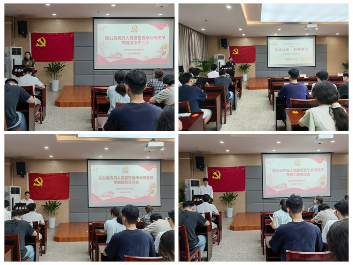 不忘初心强信念为加强毕业生党员教育,激励广大学生党员在文明离校期间以及新的学习、工作岗位上继续发挥先锋模范作用。6月19日下午,学院组织召开新发展党员入党宣誓暨毕业班党员专题组织生活会。院党委书记李娟为毕业生党员送上美好祝福和殷切期望。院党委副书记黄友生以“廉洁从业,行稳致远”为题,给毕业班学生党员讲授党纪学习教育专题党课。希望大家在新的征程中坚守廉洁初心,行稳致远,创造属于自己的美好明天。