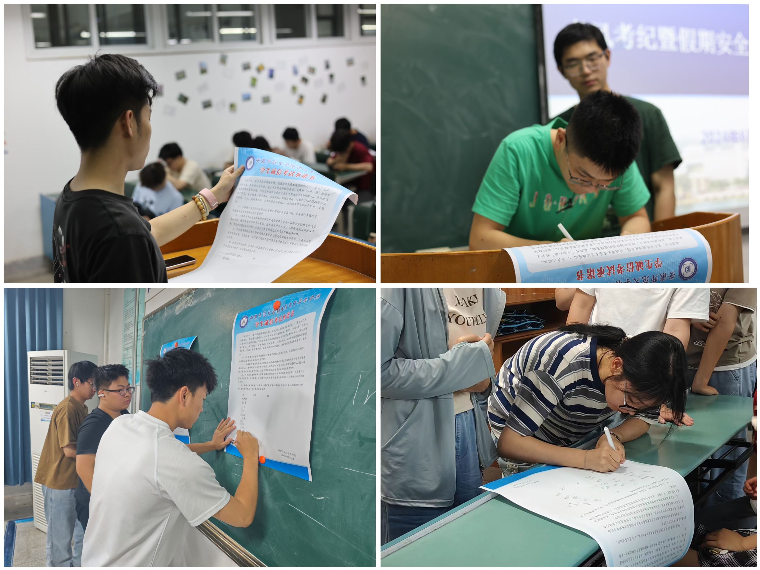 普通全日制本科毕业生学士学位授予办法(修订)》的相关规定,现场组织全体学生阅读并签署诚信考试承诺书,同学们对个人、班级、学院、学校作出郑重承诺,践行诚信考试承诺,自觉遵守考场规定,杜绝违规违纪行为的发生。