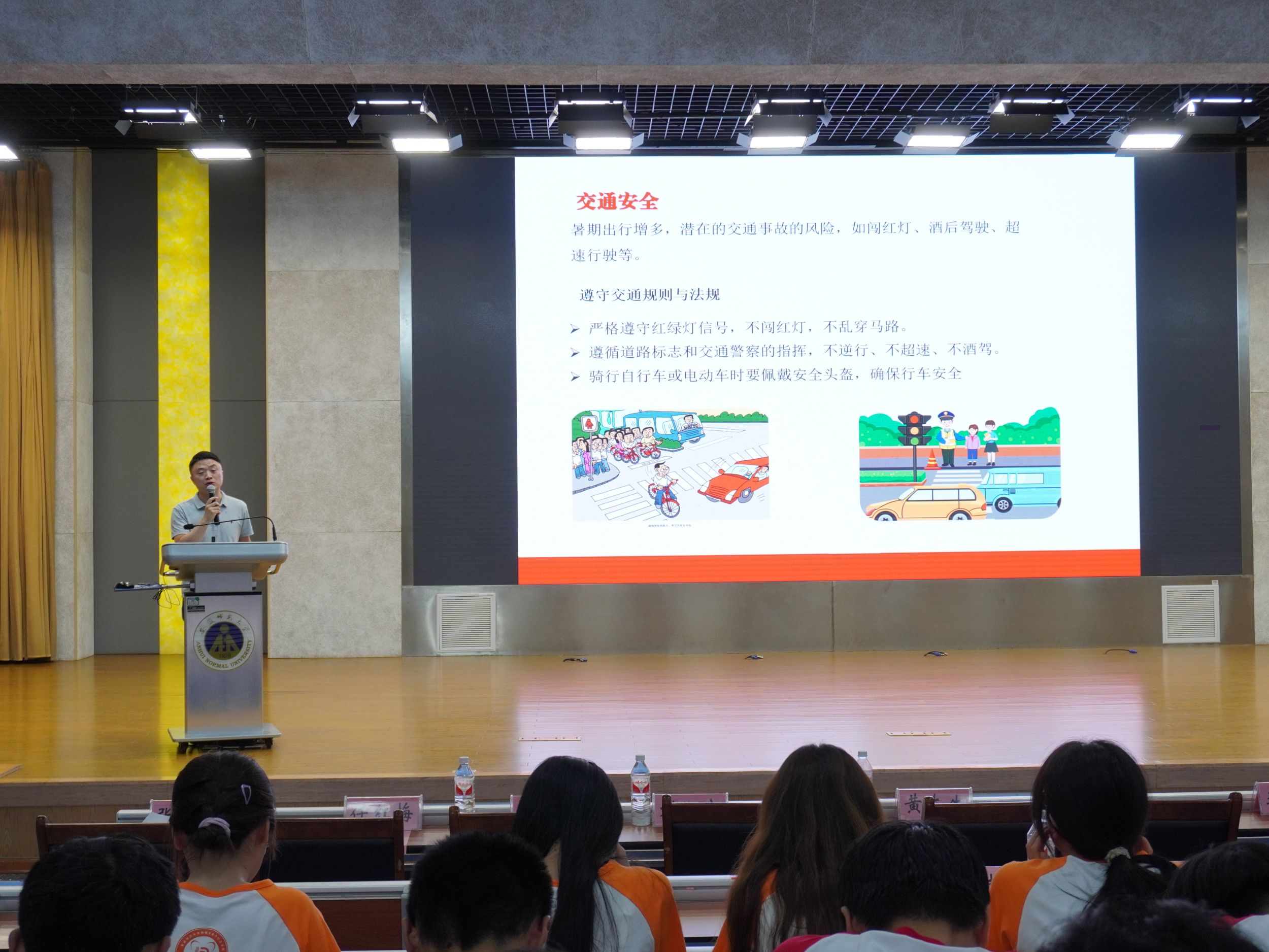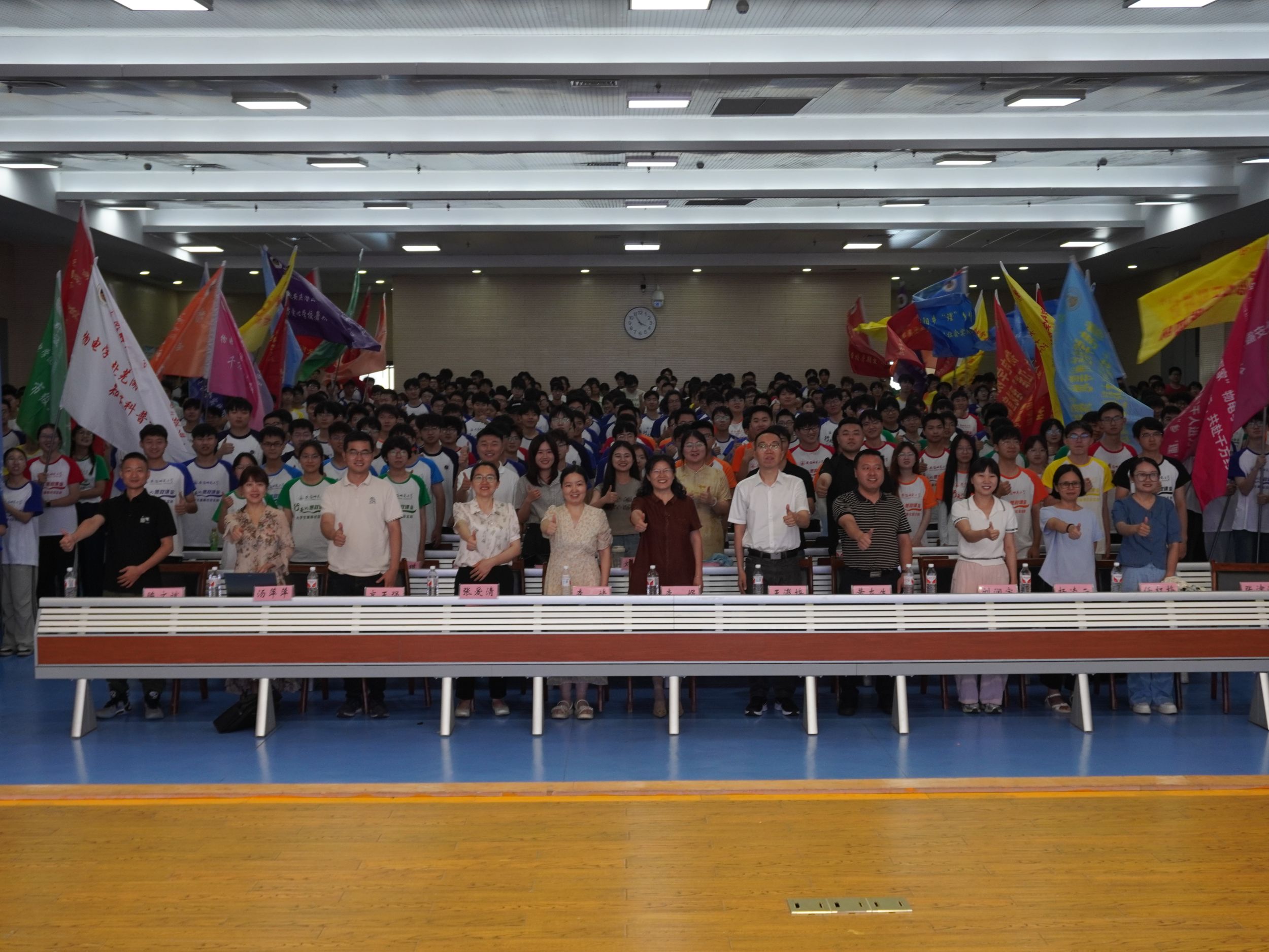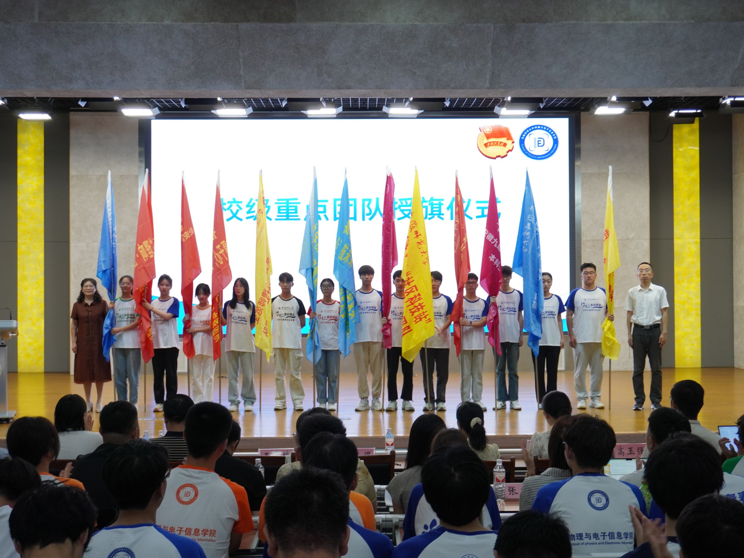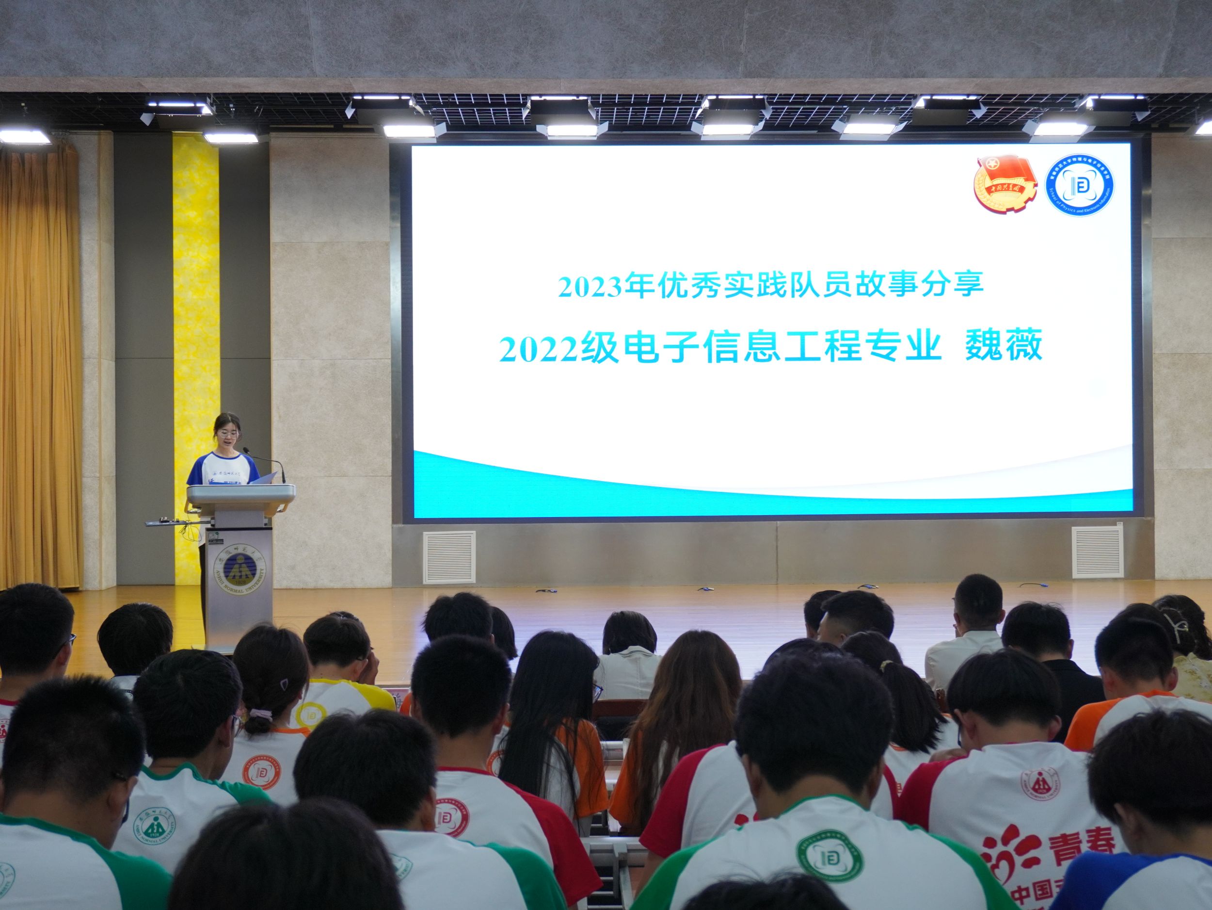 在花津校区理科大楼报告厅举办“行走的思政课堂”2024年大学生暑期“三下乡”社会实践出征仪式暨专题培训会。我校2012级校友、安徽省新媒体集团安徽乡村振兴网主编刘润宇,校思政指导教师、马克思主义学院教师王瀛培、李靖,学院党委书记李娟,学院党委副书记黄友生,教学副院长张爱清,暑期社会实践指导教师代表、全体专兼职辅导员以及社会实践团体代表参加仪式。仪式由院团委书记张津源主持。